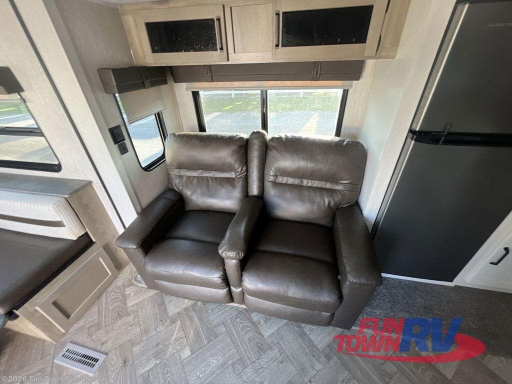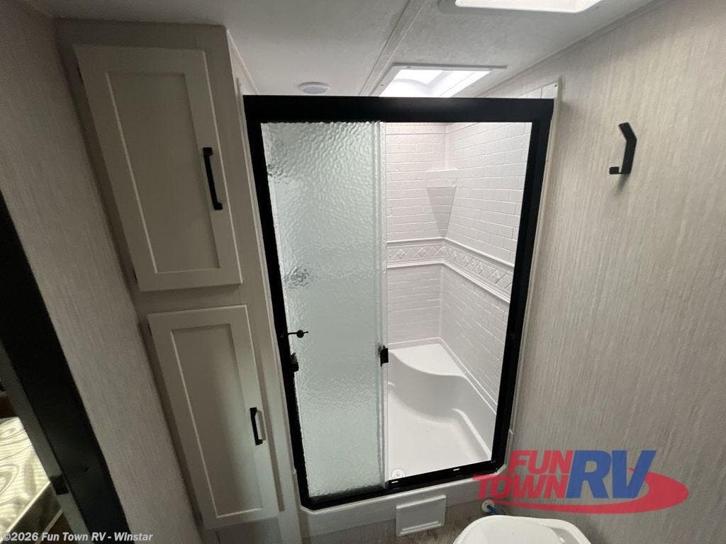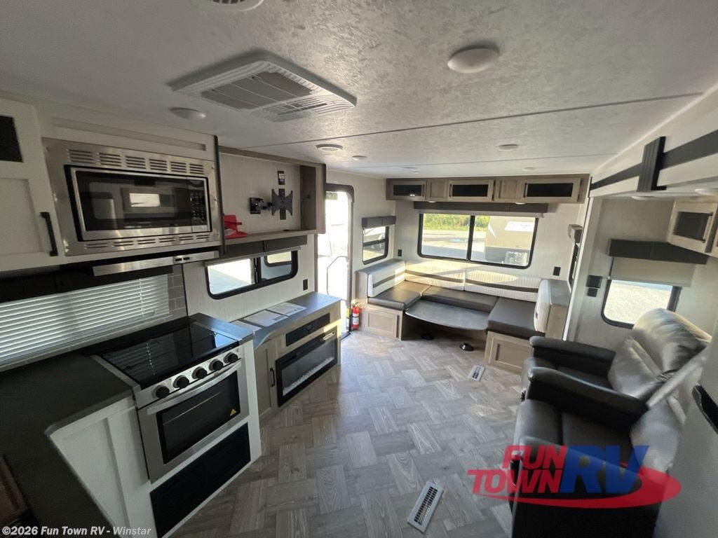 You won't believe all that this travel trailer has to offer! From the rear U-shaped dinette that is great for eating meals, playing games, and even transforming into extra sleeping spaces to the dual entry doors that will create a smooth flow of traffic in and out of the unit. The chef can prepare their best meals on the three burner cooktop or use the convenient microwave when you're on the go. The walk-through bathroom is easy for everyone to access, especially those staying in the front bedroom, and has a 32" x 40" shower with a seat to freshen up in each morning!