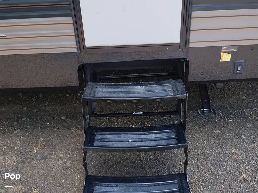 Measuring nearly 32 feet long and just over 11 feet high, this travel trailer offers a spacious interior with a single slideout, dual entry doors, and sleeping space for up to six.