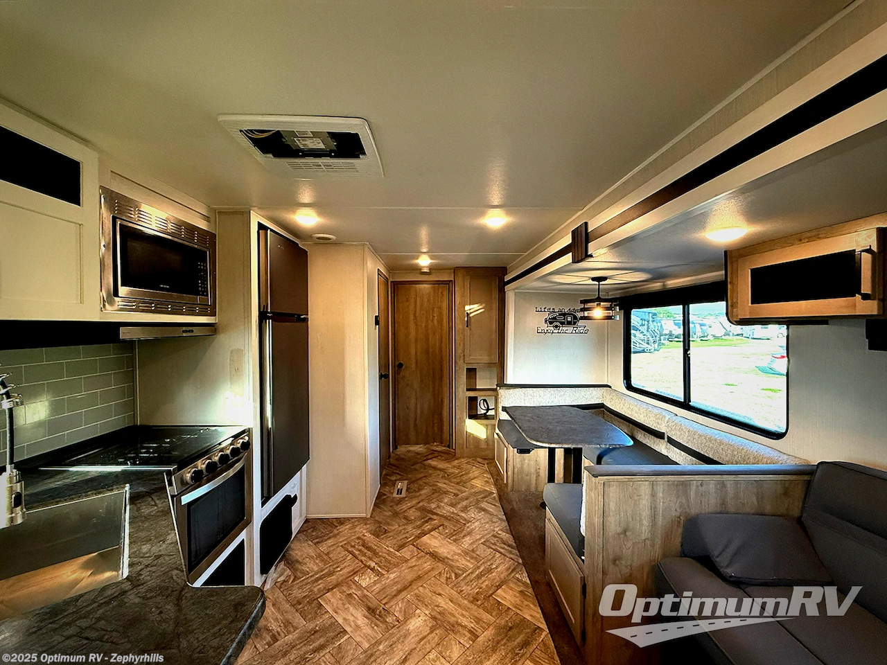 If you're looking for family-fun adventure then you need one of these Palomino Puma fifth wheels, travel trailers, or toy haulers! They are built rugged, easy to tow, and jam packed with features. The Darco wrapped underbelly will protect your units vitals through every season and the AlphaPly roofing membrane covers it. They also have super lube axles and a powder coated frame. Their luxurious interiors feature a spice rack and built-in knife rack in the kitchen, USB charging ports to keep your electronics at 100%, and high density foam mattresses for a good night's rest. The required Advantage package comes with night roller shades for privacy at night, two outside speakers to crank up the tunes while you play cornhole, and an outside shower to keep the dirt outside where it belongs, plus so much more!