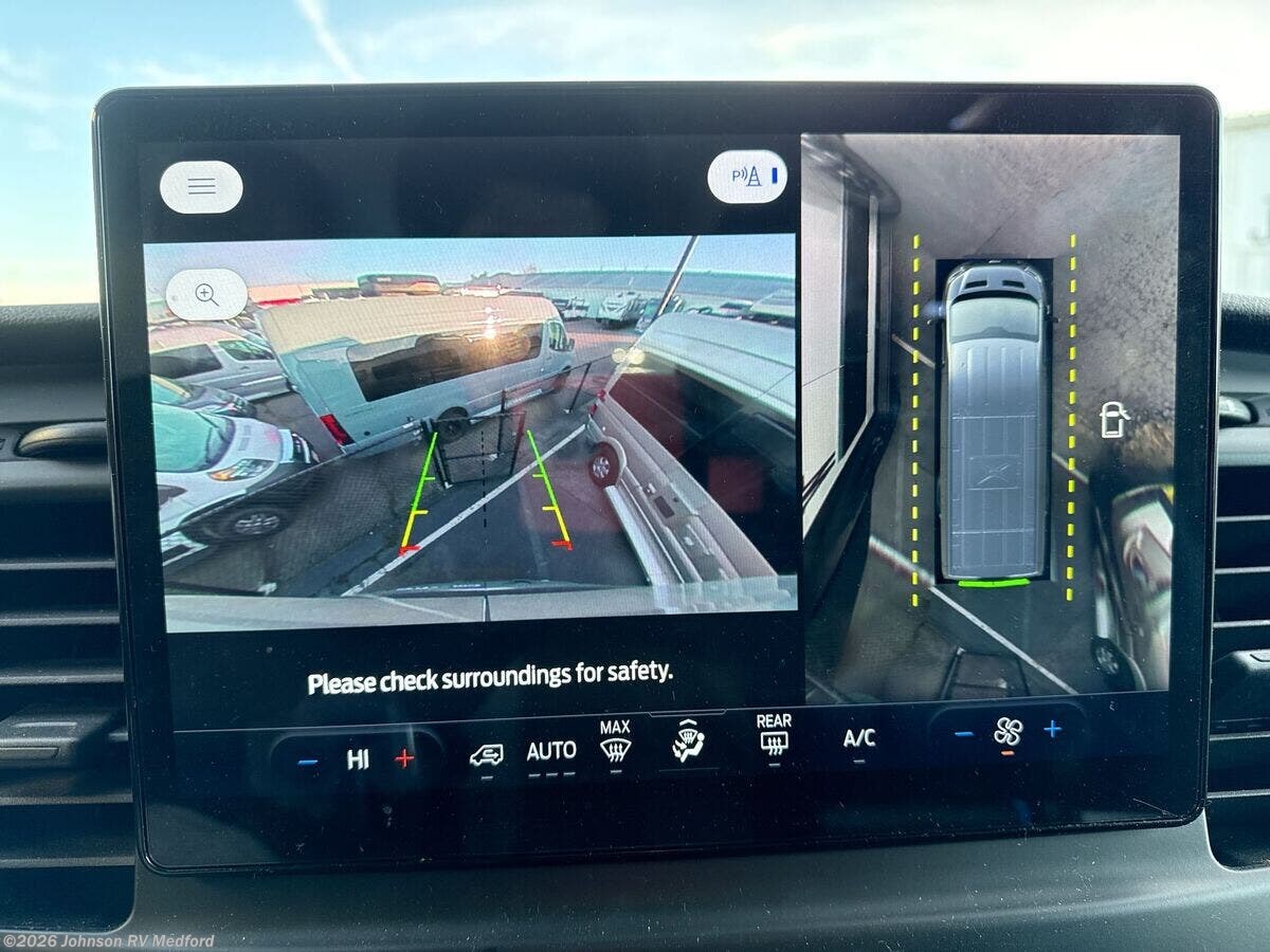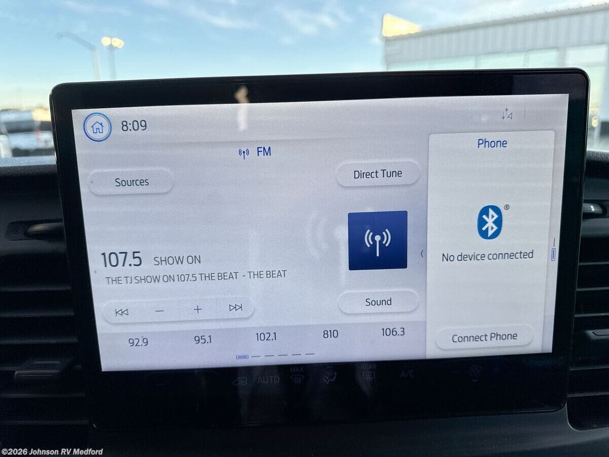 Features Include: 148-inch Wheelbase, AGM Chassis Battery, Airbags, Hill Start Assist, Lane-Keeping System, Lockable Glove Box, Swivel Seats, Hands-Free Calling, AppLink Integration, AC, LED Porch Light, 78-inch High Ceiling, Memory Foam Cushions, Corian Sink Cover, Induction Cooktop, Microwave Oven, Multiplex Wiring, FordPass Connect App, Power Sofa, Queen Bed 67x77, Enclosed Wet Bath, Power Outlet, Stainless Steel Sink, Shower Curtain, Handheld Showerhead