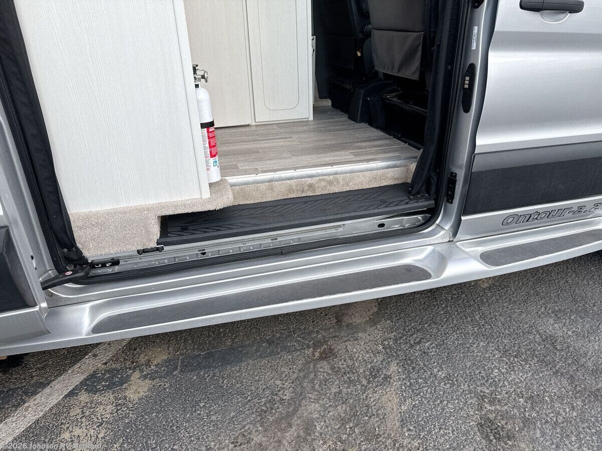 Introducing the 2023 Pleasure-Way Ontour 2.2, a sophisticated and adventure-ready RV crafted for those who value comfort and convenience. This impressive Class B RV is built on the robust Ford Transit 350 AWD Van Chassis, boasting a 148-inch wheelbase and powered by a 3.5L EcoBoost V6 Gas Engine with 310 HP and 400 lb-ft of torque. Its 10-speed SelectShift Automatic Transmission ensures smooth driving on any terrain. Features like the Heavy Duty 250-Amp Alternator and 4-Wheel Disc Brakes with ABS enhance performance and safety. Safety and convenience are at the forefront with: - Front and Side Cab Airbags - Safety Canopy Side-Curtain Airbags - Adaptive Cruise Control - Automatic High Beam Headlamps - Automatic Rain-Sensing Wipers - Blind Spot Assist 1.0 - Forward Collision Control - Hill Start Assist - Lane-Keeping System - Pre-Collision Assist with Automatic Braking - Side-Wind Stabilization - SOS Post-Crash Alert System The cab offers ample features for a seamless travel experience: - Remote Keyless Entry System - Power Door Locks and Windows - Swivel Seats - 12-inch Sync4 Touchscreen with Navigation - Bluetooth Audio Streaming - Apple CarPlay and Android Auto - Rear View Camera System Step inside the living space, and you'll find: - Fiamma Power Awning with LEDs - Premium Vinyl Flooring - Soft-Touch Vinyl Headliner - Dimmable LED Lighting - Frameless Awning Style Windows For dining: - Lagun Swivel Table Dual Mount Position - Corian Solid Surface Countertop with an Undermount Stainless Steel Sink - Induction Cooktop and a 12v Norcold Refrigerator Freezer - Moen Faucet with Pull-Out Sprayer Electronic features are abundant and include: - Dual 10-inch Touchscreen Control Panels - USB-A and USB-C Charging Ports - Winegard Rayzar Automatic HDTV Antenna - 24-inch LED Smart TV on a Swing Mount - Bose Bluetooth Soundbar Sleeping quarters offer: - Power Sofa that converts to a Queen Bed (67x77 inches) - Ample wardrobe space for your travel necessities The private bathroom provides: - Enclosed Wet Bath with a Stainless Steel Sink - Shower with a handheld spray and shower curtain - Ceramic Bowl Foot Flush Toilet Mechanically, the RV is equipped with advanced systems such as: - 2.8kW Onan QG 2800i Generator - 600Ah Eco-Ion Earth Smart Lithium Batteries - 300w Go Power! Solar Package - Xantrex Freedom XC Pro 3000w Inverter Charger - Truma AquaGo Comfort Plus Instant Hot Water The attention to detail and the thoughtful integration of high-quality materials make the 2023 Pleasure-Way Ontour 2.2 an exceptional choice for travelers seeking a blend of luxury, functionality, and adventure in their RV experiences. ???