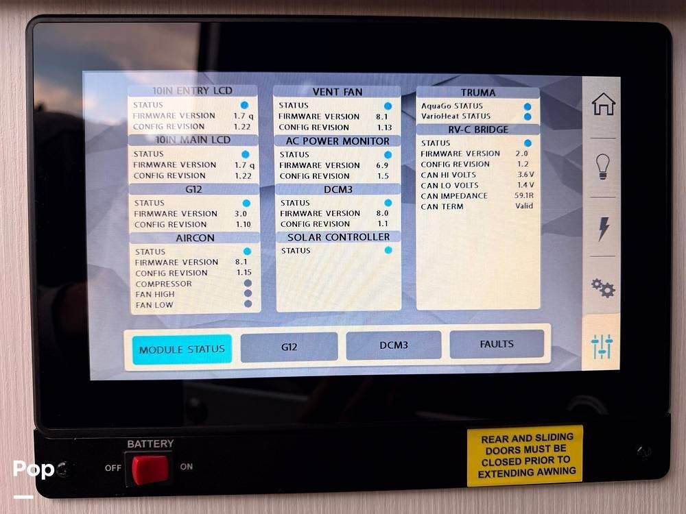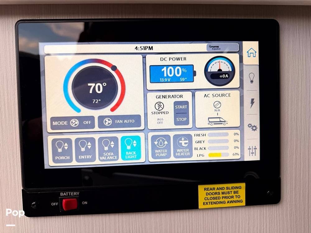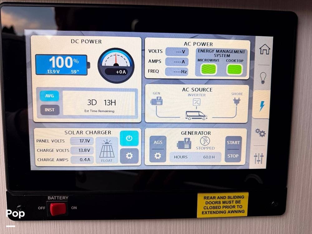 Modern systems such as lithium house batteries, solar charging, an inverter, multiplex controls, and efficient heating and hot water equipment support off-grid capability while keeping operation simple and intuitive.