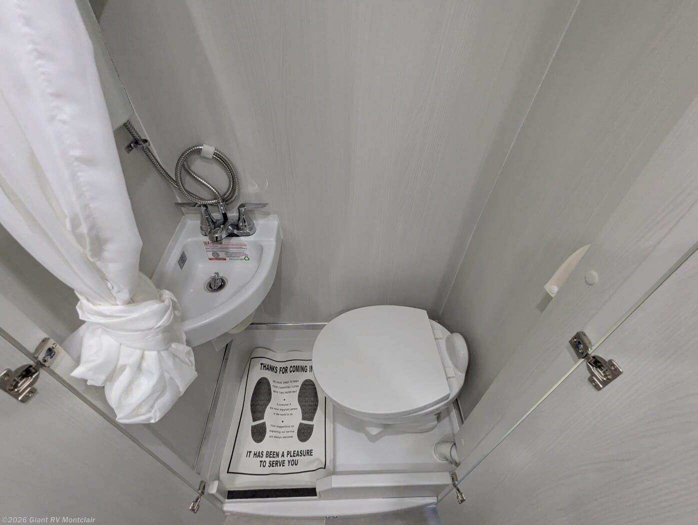 - Wet Bath: Compact bathroom with a shower, cassette toilet, sink, and exterior shower for convenience.