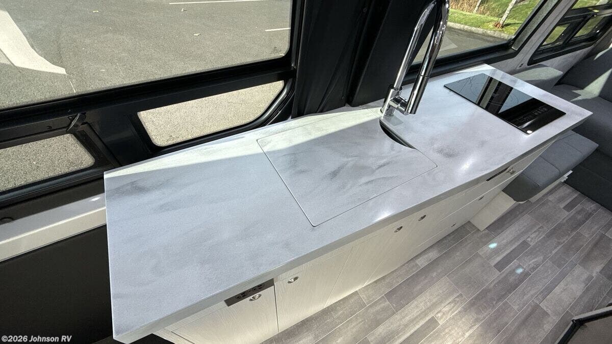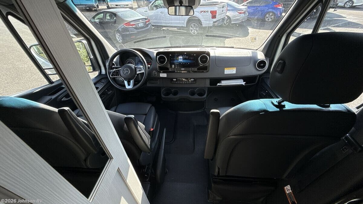 Features Include: Fuel Type Diesel, HP Rating 211 HP, Wheelbase 170", Fuel Type Diesel, Power adjustments, Memory settings, Navigation, Keyless ignition, Air conditioning, Power windows, Cable TV hook up, Interior, Vinyl flooring, Fire extinguisher, LP, CO Smoke detectors, Galley, 12V, 2-door, High-arc, Bathroom, Shower curtain, Handheld showerhead, Vanity w/ storage, Stainless steel sink, Corian countertop, Towel rack, Electrical, Multiplex wiring, 30-amp power cord, fresh, grey and black, vent and furnace, Water pump, awning, LED porch light, cable TV hook-up, 30-amp power outlet, Ventilation, Cooling, Truma VarioHeat 11, 500 BTU Furnace, Truma Aventa Eco 13, Monitor panel for LP, fresh, grey, Drive Away Assist, Active Brake Assist, Traffic Sign Assist, Attention Assist, Blind Spot Assist, Crosswind Assist, LED headlamps, Locking fuel fill