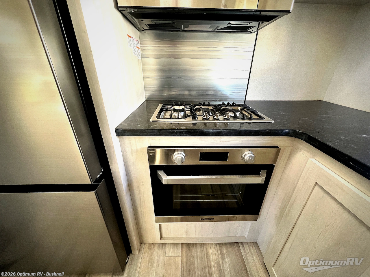 You will be ultra impressed by this LaCrosse travel trailer! First, the interior is made to feel just like your own home with its theater seating, hide-a-bed sofa, free-standing table with chairs, and entertainment center with 50" LED TV and fireplace. Second, you'll find even more residential comfort in the rear kitchen that has a Furrion residential cooktop, a 30" microwave oven, and a 10.7-cubic foot refrigerator. And lastly, the walk-through bathroom has two doors on either side with one of those doors leading directly into the front private bedroom, so you know you'll enjoy great comfort in this space each night. There is also a bedroom bench at the front of this trailer which gives you an enjoyable place to relax as you take in the views from the front windshield.