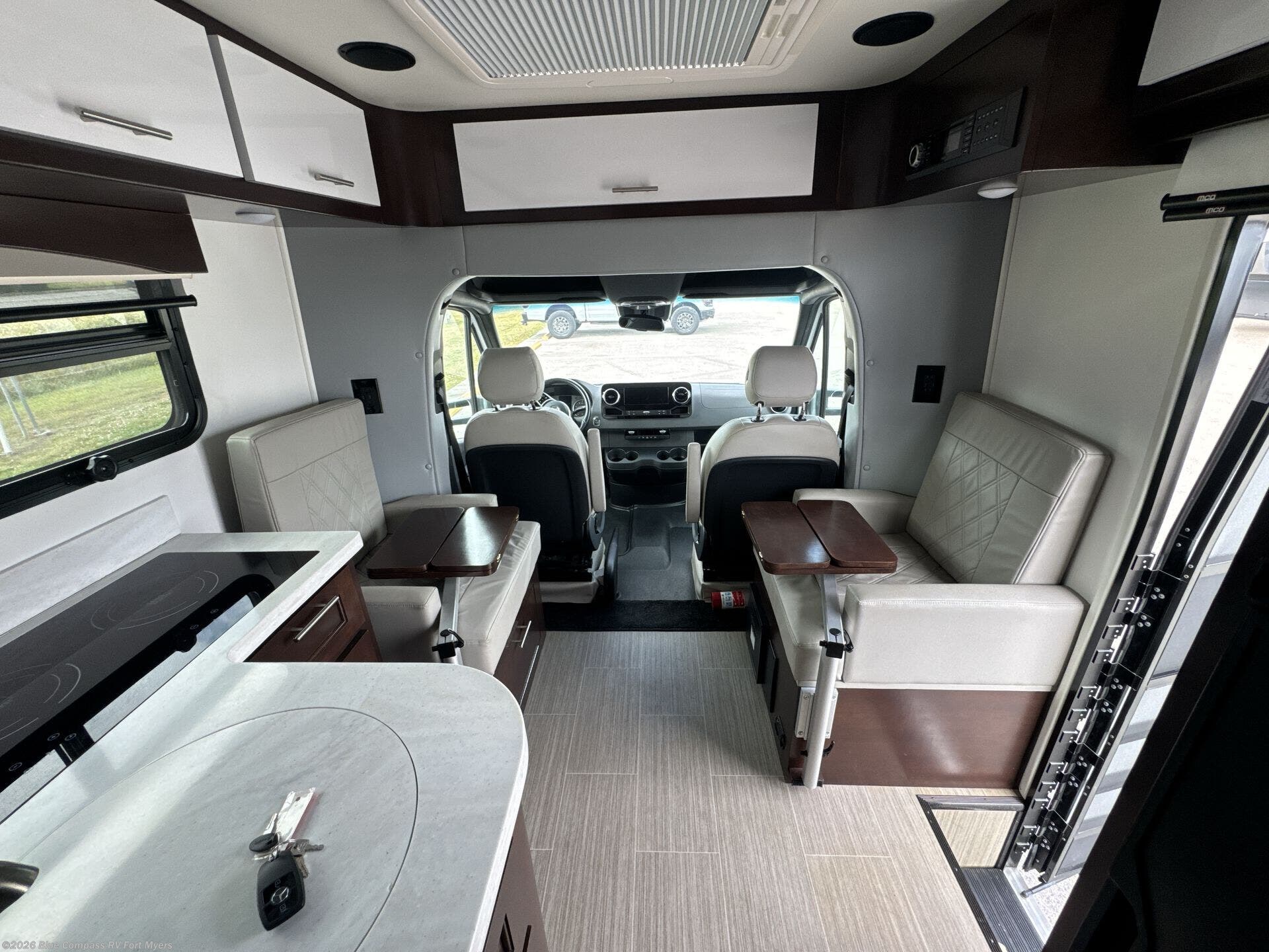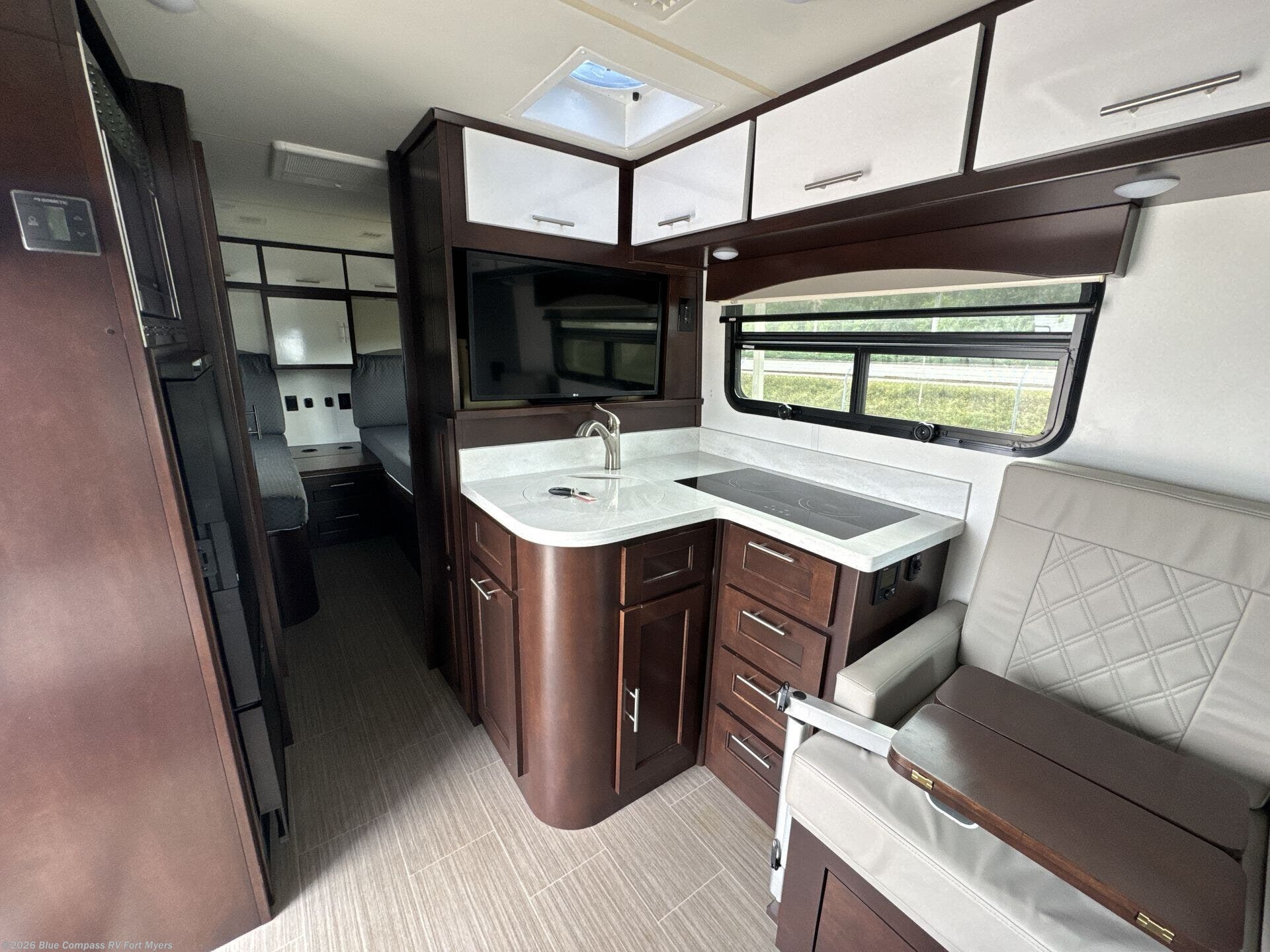 It's time you hit the road in style and comfort with this Regency RV Ultra Brougham Class B+ diesel motorhome! It features a rear set of twin beds with a wardrobe at the end of each bed and an LED TV to watch your favorite movie in true comfort. The separated bath allows one person to clean up in the shower while another person washes up for dinner. After you have whipped up your best meal on the portable induction cooktop, you can enjoy it while sitting in one of the two opposing chairs that has a dinette table in front if it.