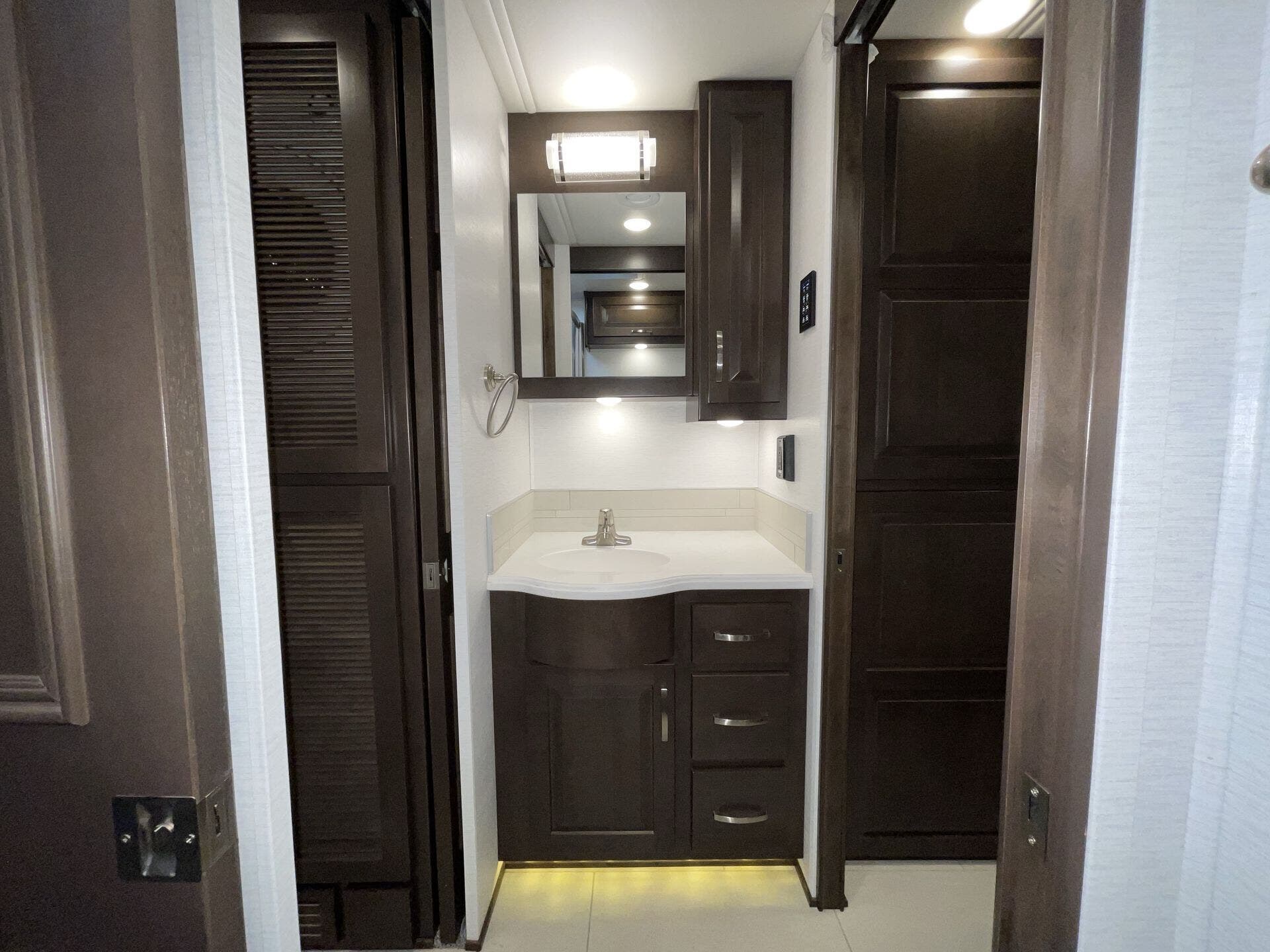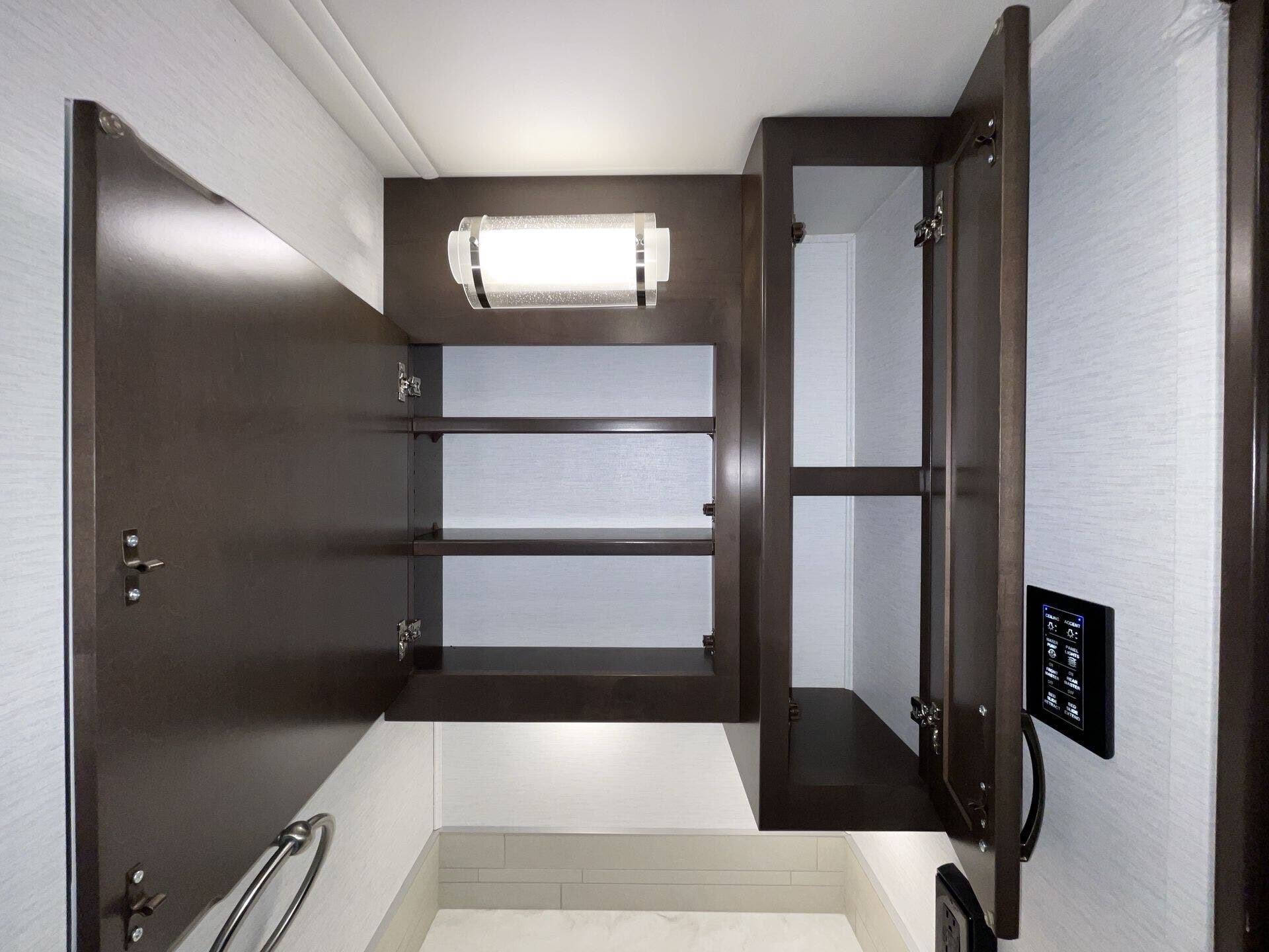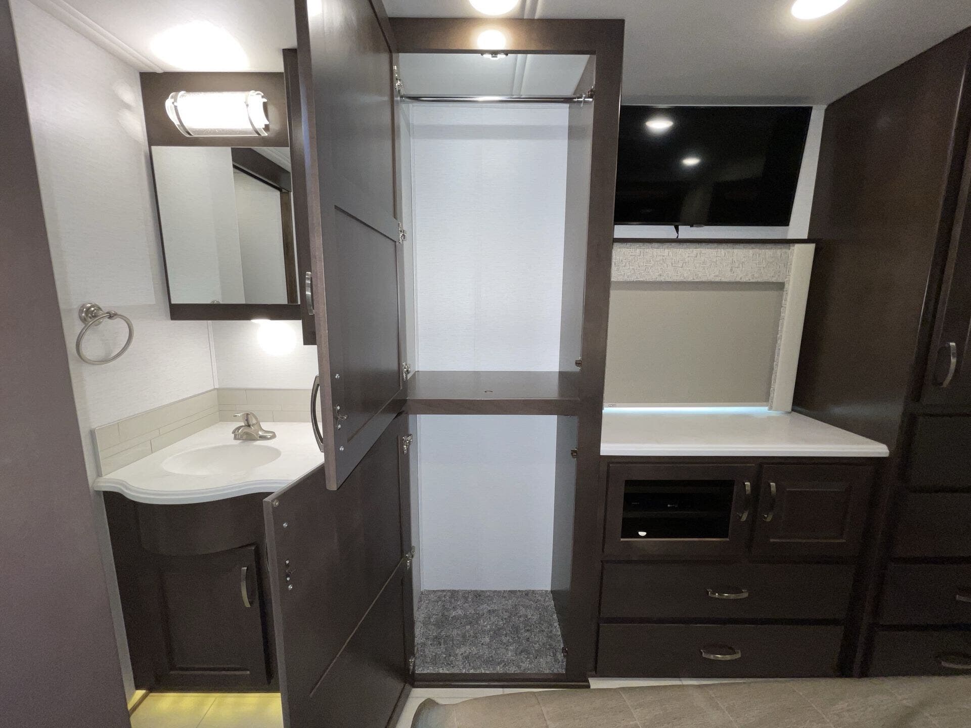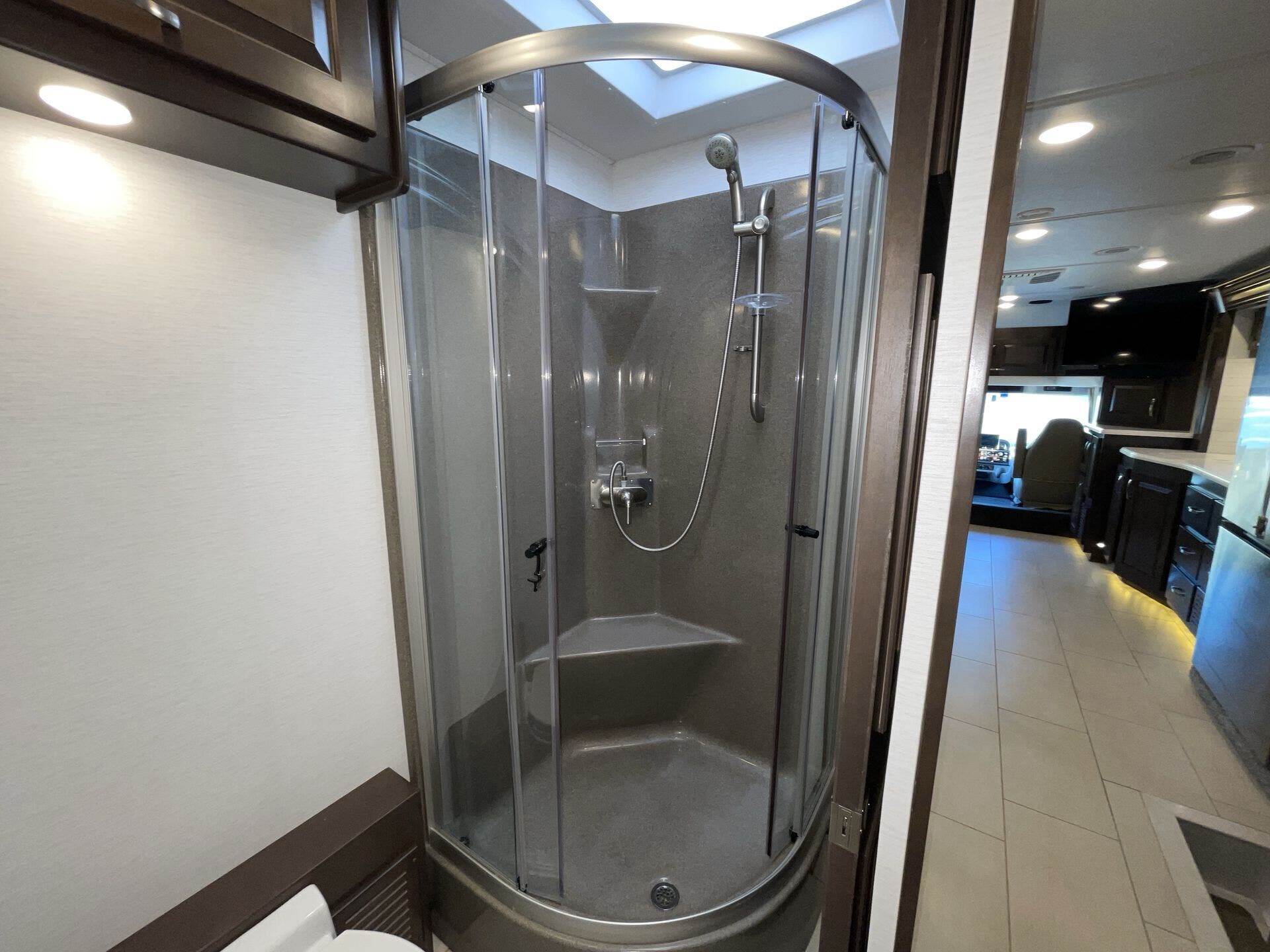 The split bathroom is generous with a separate shower that doesn’t feel like a closet, and the overall storage — inside and out — is the sort of setup that makes longer trips way easier. You’re not constantly juggling where to put things or trying to make room for gear.