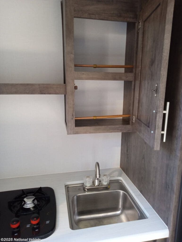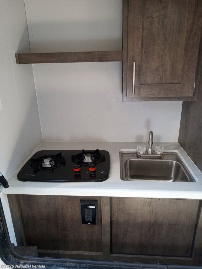 Inside, the Intrepid 511 offers a cozy sleeping area for two, smart storage solutions, and a surprisingly open feel for its size. While the interior space is efficient and streamlined, the trailer also features an outdoor kitchen setup, giving you the freedom to cook under the open sky. Climate control is handled with a 13,500 BTU air conditioner and a 20,000 BTU furnace, making it comfortable across a variety of weather conditions.
