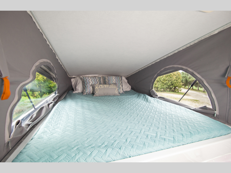 This Zion Slumber model takes the Zion models to a whole new level of comfort. The pop top allows you to separate your sleeping space from your living and dining area, plus you can invite more friends along to sleep on the side-facing rear power sofas that can convert to twin beds or a king-size bed. Easily bring along food in the 5-cu. ft. refrigerator and slide-out pantry, plus there is a counter extension to prep meals each day. The exposed center aisle gives you more storage space to bring larger gear such as bikes or kayaks, and the wet bath includes a marine toilet, sink and a shower to wash up after your excursions.