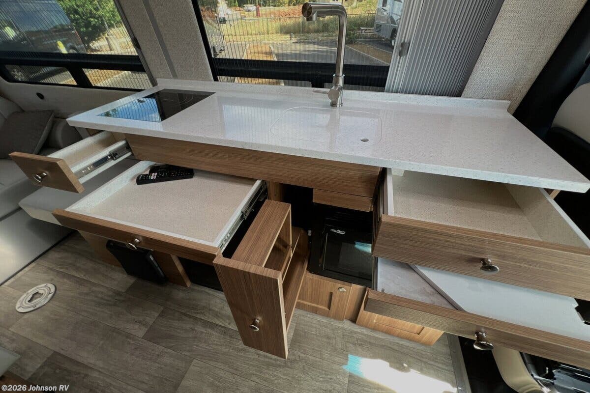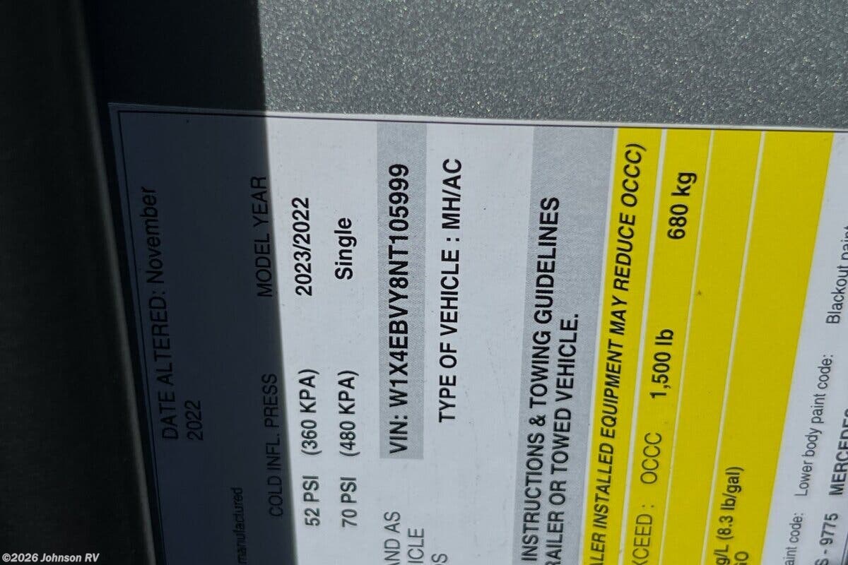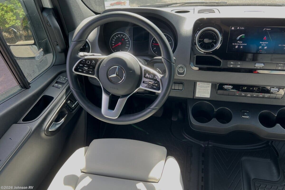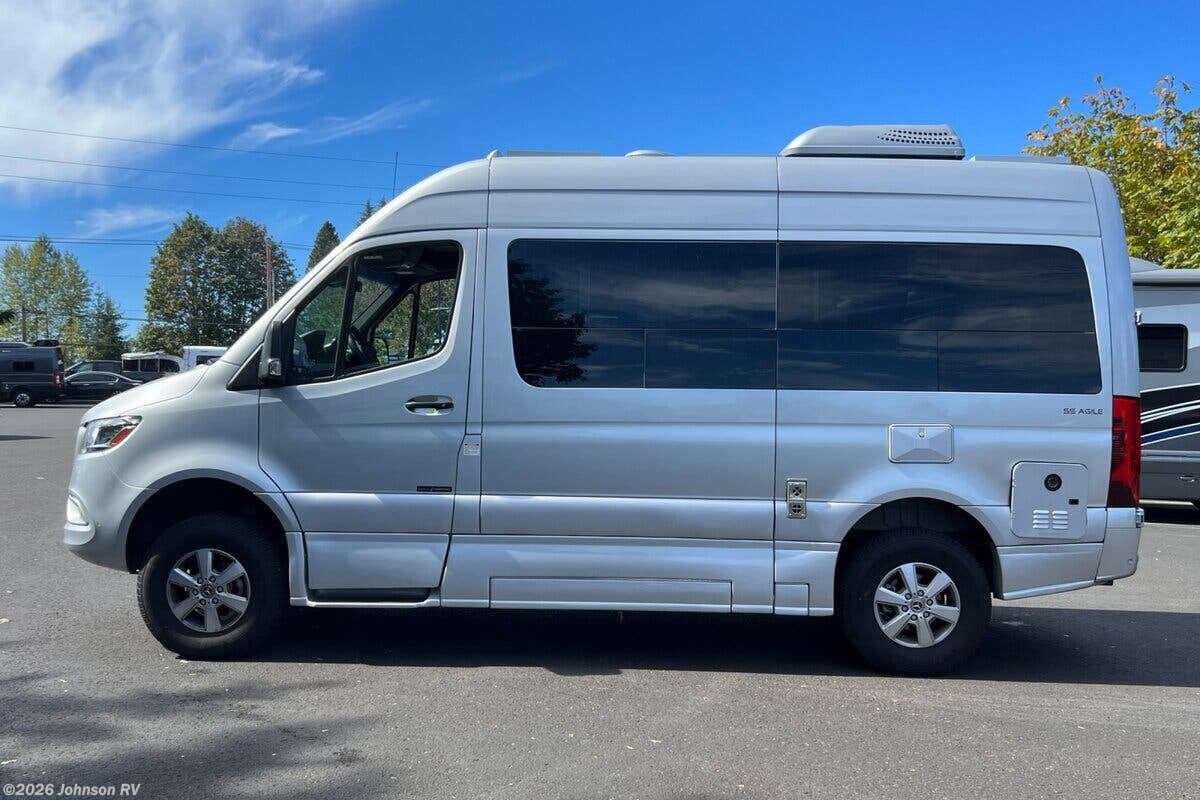 The 2023 Roadtrek SS Agile is a versatile and compact Class B RV, built on the reliable Mercedes-Benz Sprinter Chassis. This particular model, with only 10,749 miles on the odometer, offers a comfortable and convenient travel experience, packed with high-end features and modern amenities. Key Features: - Mercedes-Benz Sprinter Chassis - 7-Speed Automatic Transmission - 16-inch Aluminum Wheels - Tire Repair Kit Exterior Highlights: - Crafted Ground Effects for aerodynamics and style - Frameless Tinted Windows for privacy and a sleek appearance - Retractable Power Awning for shade and outdoor relaxation - Rearview Camera to assist with maneuvering Driving and Cab Features: - Slide Door Power Step for easy entry - Heated Front Seats for comfort in cooler weather - Driver Assist Systems including Electronic Stability Control and Traction Control Electronics and Connectivity: - Firefly Systems Monitor to control RV settings and functions - Smart TV for entertainment on the go Dining and Kitchen: - Fold Down Sink Faucet to maximize counter space - 3.1 cubic foot 12V/110V Refrigerator for fresh food storage - Convection Microwave for quick and efficient cooking - Flush Stove Cover to provide extra surface area when not cooking Bathroom Facilities: - Enclosed Bath with Shower and Toilet for privacy and convenience - 12V Macerator Pump for efficient waste management Sleeping Accommodations: - Rear Power Sofa Bed that easily converts for comfort and flexibility - Magnetic Door Screens to keep bugs out while enjoying fresh air Mechanical and Utility Features: - 300W Solar Panel for off-grid power - 400 Amp Lithium Battery for reliable energy storage - 30-Amp Service Cord for campground hookup - 11k Roof AC and 16k Propane Furnace to maintain comfortable temperatures - Tankless Insta Hot Water and 12V Water Pump for modern plumbing - Outdoor Shower for outdoor cleaning or rinsing off The Roadtrek SS Agile is designed for those who value luxury and functionality in a compact RV, making it an excellent choice for adventurous travelers who seek mobility without sacrificing comfort. ??