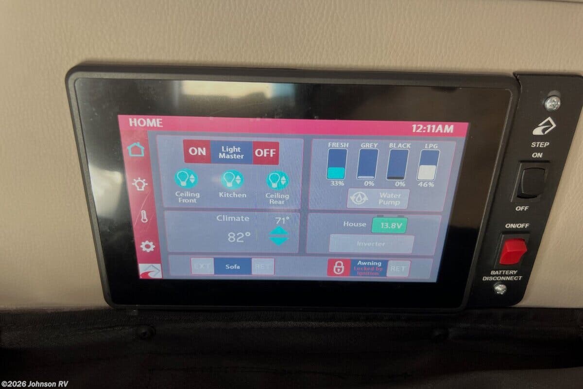 Features Include: 7-Speed Automatic, Traction Control, Heated Front Seats, Electronics, Smart TV Dining, Flush Stove Cover, Enclosed Bath, Shower, Toilet, Rear Power Sofa Bed, 300w Solar Panel, 30-Amp Service Cord, 11k Roof AC, 16k Propane Furnace, 12v Water Pump, Outdoor Shower