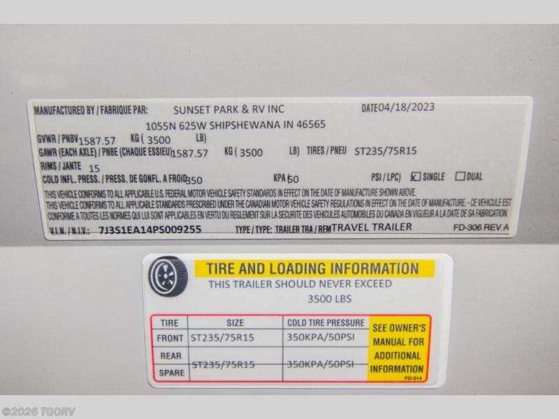 Request More Info on this 2023 Sunset Park RV SunRay 109 Offered for sale by TGORV