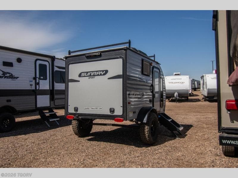 The Sunray travel trailer from Sunset Park RV is an investment that you'll be able to enjoy for many years to come! These compact trailers are effortless to tow, so you won't need fancy equipment to have fun at the campsite. The Sunray is built upon a powder-coated steel chassis, and it has a diamond plate rock guard to keep the front end protected from debris. You'll find radial tires, a spare tire with carrier, and .024" aluminum siding on each model. You'll be able to remain comfortable when staying indoors thanks to the air conditioner and furnace, and each model has been prepped for a backup camera in order to make your maneuvering a little bit easier. Another way that your camping experience will be elevated is with the Confidence Package which comes with a 6” lift with off-road tires, black steel rims, and a roof rack.