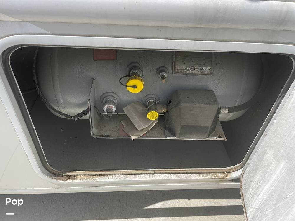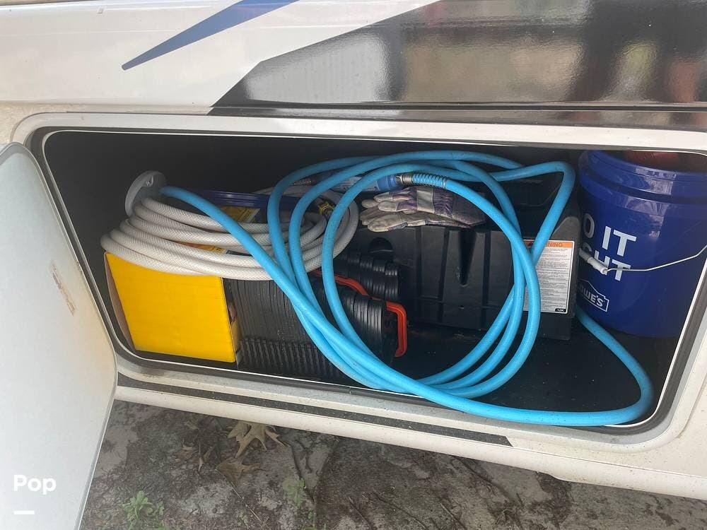 Outside has a shower (previously mentioned TV), awning, propane hook-up for an outside grill. and plenty of storage.