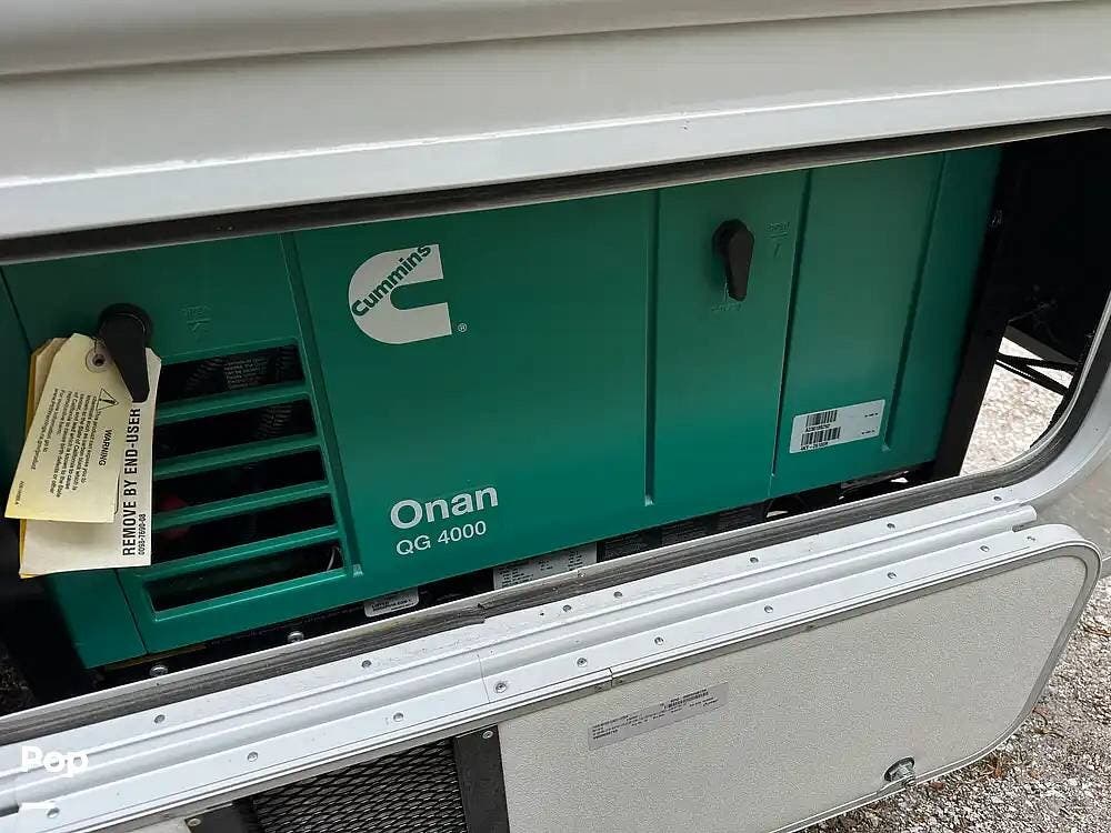 Features include an Onan 4.0kW generator, outside kitchen & TV, dual A/c units, 19' awning, enclosed & heated holding tanks, slide toppers, backup & sideview cams with heated mirrors, and solar prep.