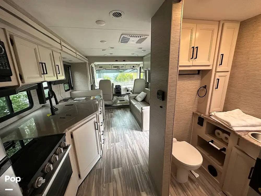 Check out this barely used 2023 Thor Resonate 30C available for sale in Florida. The current original owner is no longer able to use the coach. Room to sleep up to 8 with the King bed, overcab bunk, convertible dinette & sofa sleeper.