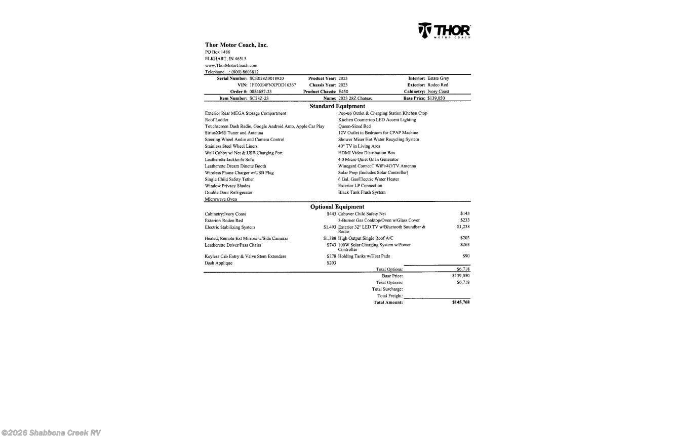 Request More Info on this 2023 Thor Chateau 28Z * Offered for sale by Shabbona Creek RV