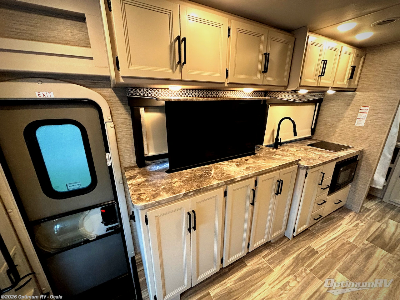 Pack your bags and fuel up this motorhome for a great vacation getaway! Enjoy a good night's rest each night on the 60" x 74" Murphy bed slide and sit on the sofa during the day with a pedestal table to set your drinks. You can prepare your best home cooked meals with the electric start two burner gas cooktop or heat up some leftovers in the convection microwave oven. The front built-in skylight lets in more natural lighting and makes it easier to see the retractable 40" TV. Freshen up each day in the full rear bathroom with a 24" x 36" shower and linen closet to keep your towels close by, plus there is a wardrobe just outside the bathroom to keep your clothes looking nice!
