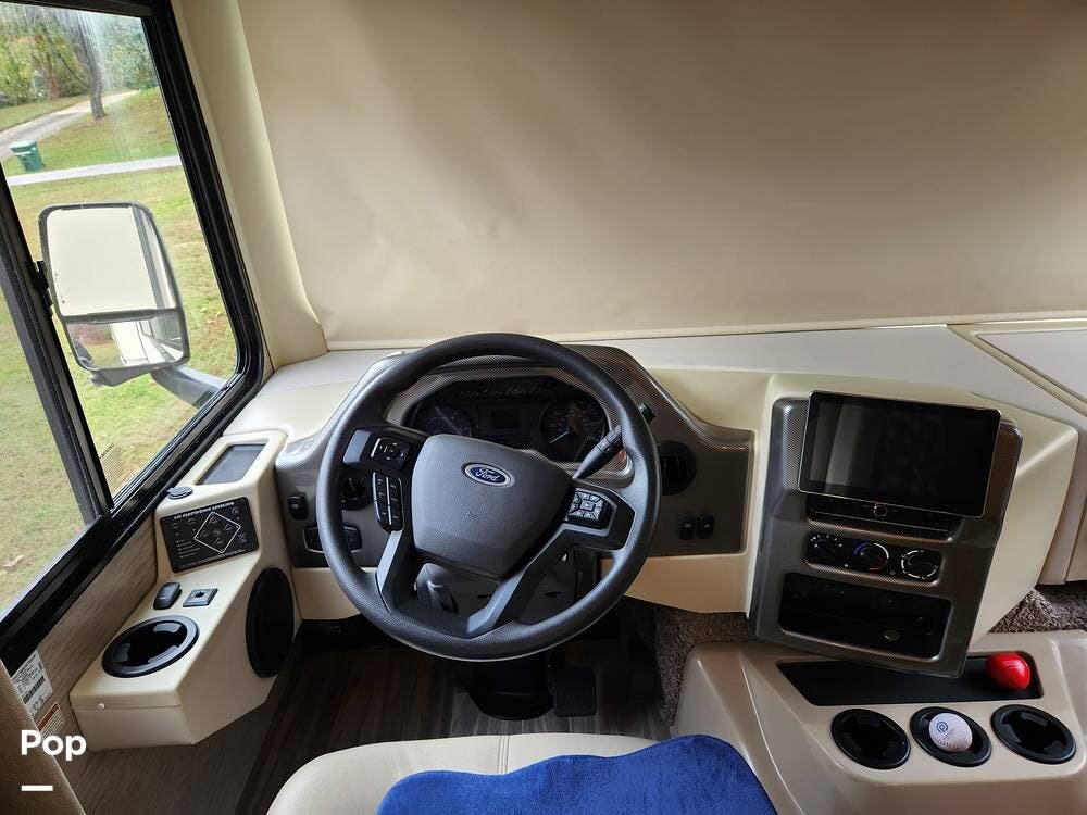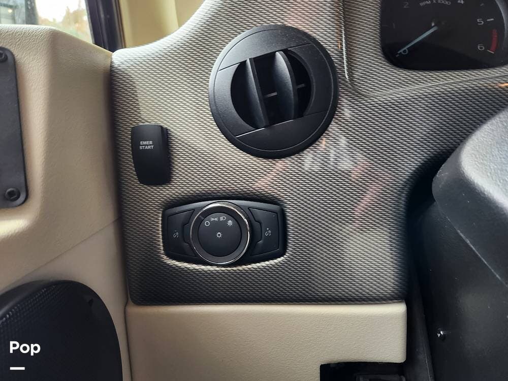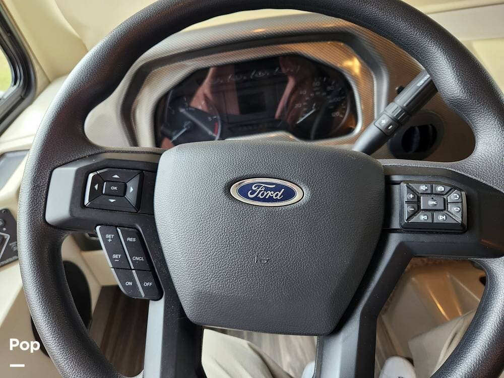 At 33 feet in length, this coach is easy to drive and maneuver in tight spaces yet packs a wealth of interior space with all of the amenities you expect from a Class A coach. It is built on a Ford chassis and is powered by a 7.3L 350 HP engine.