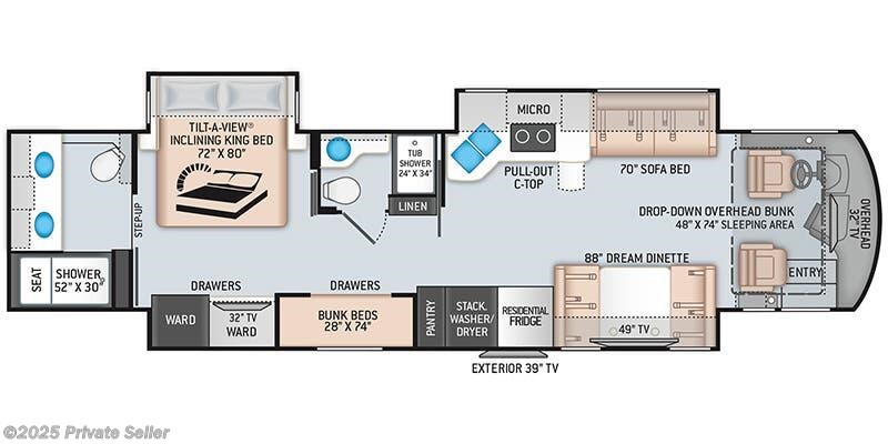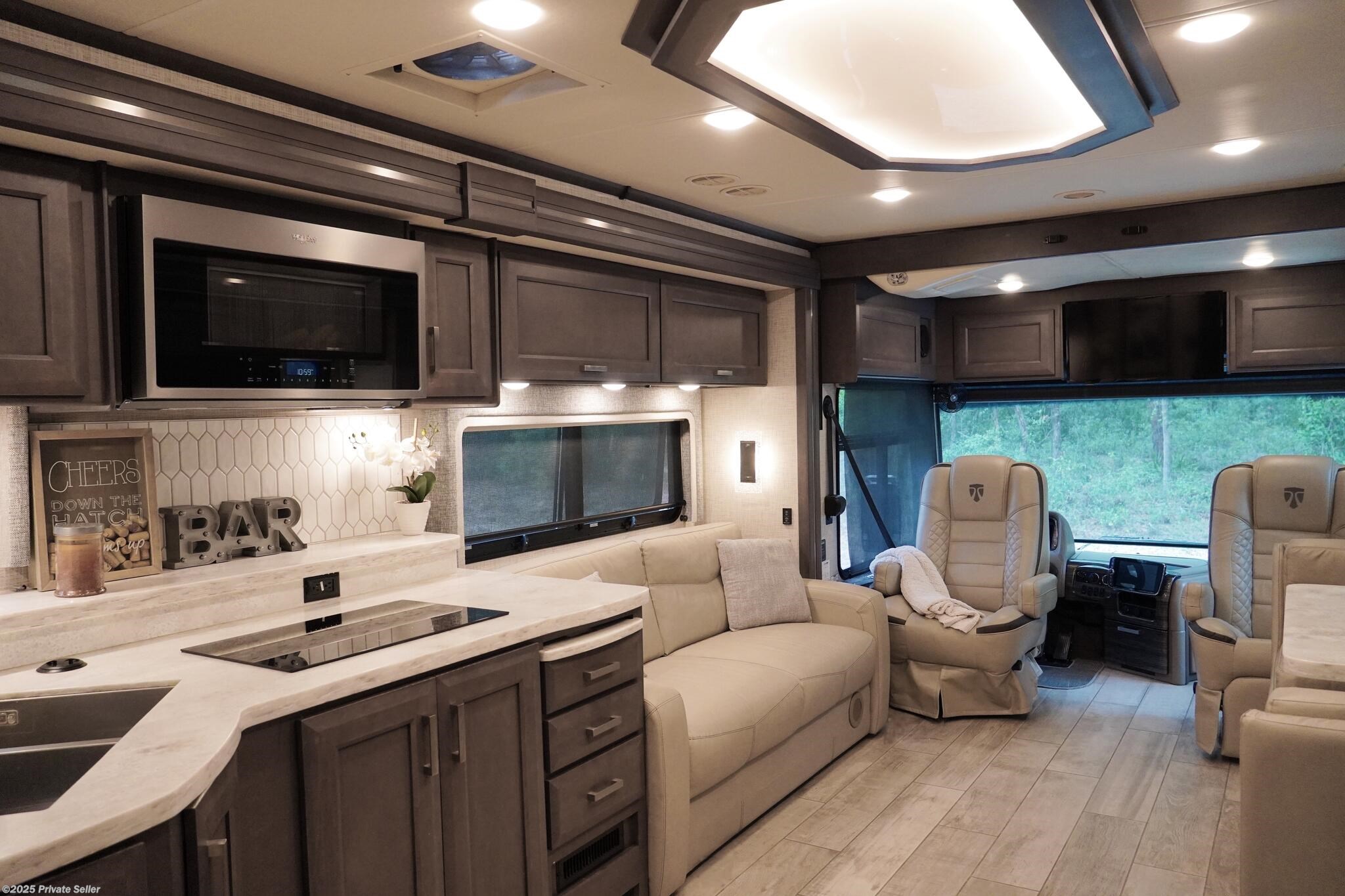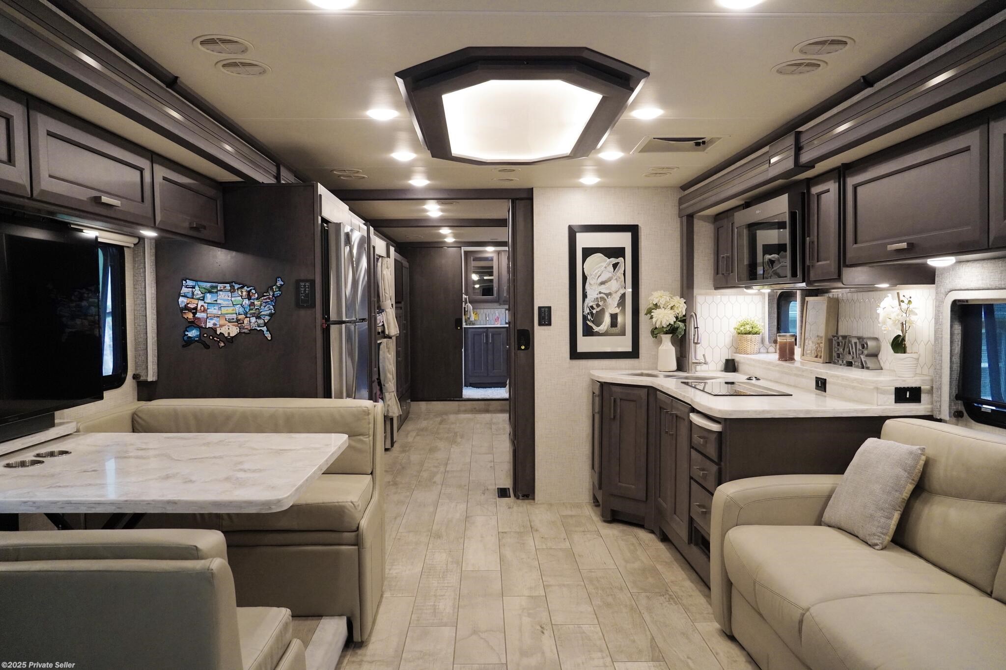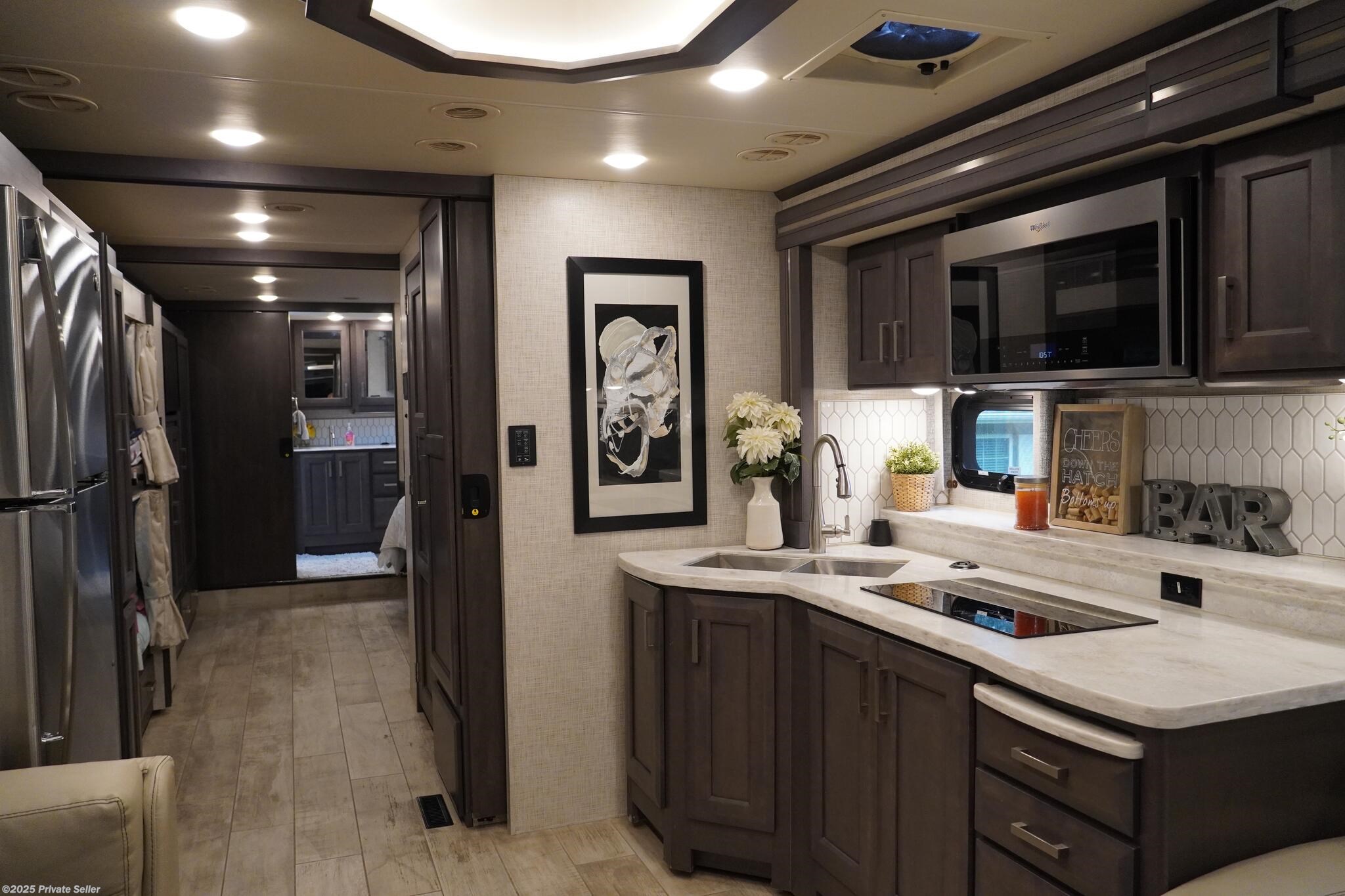 From polished porcelain tile flooring to Studio Collection cabinetry, LED accent lighting, and designer backsplashes, every inch of this coach screams sophistication. It truly feels like a high-end condo on wheels.