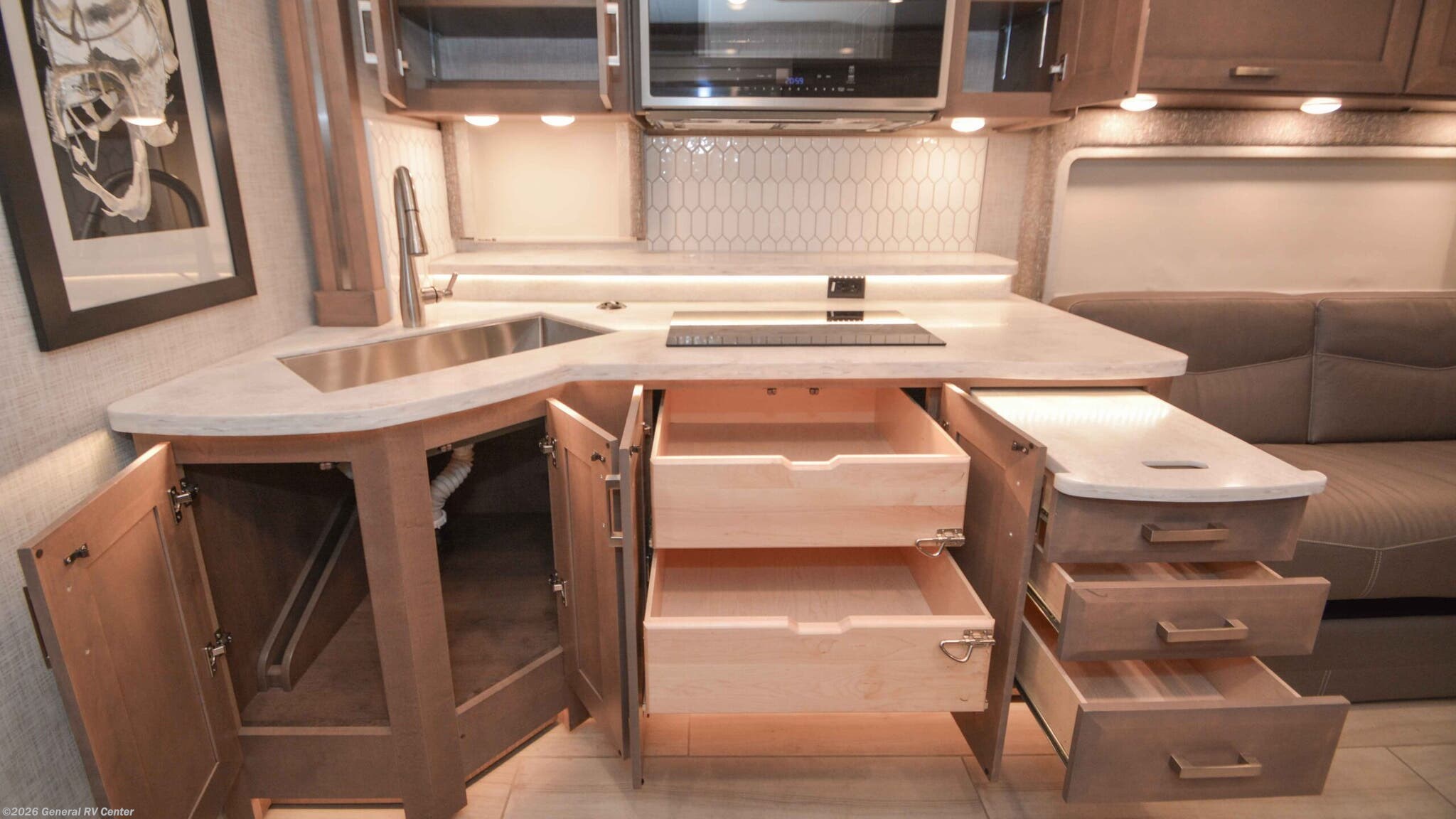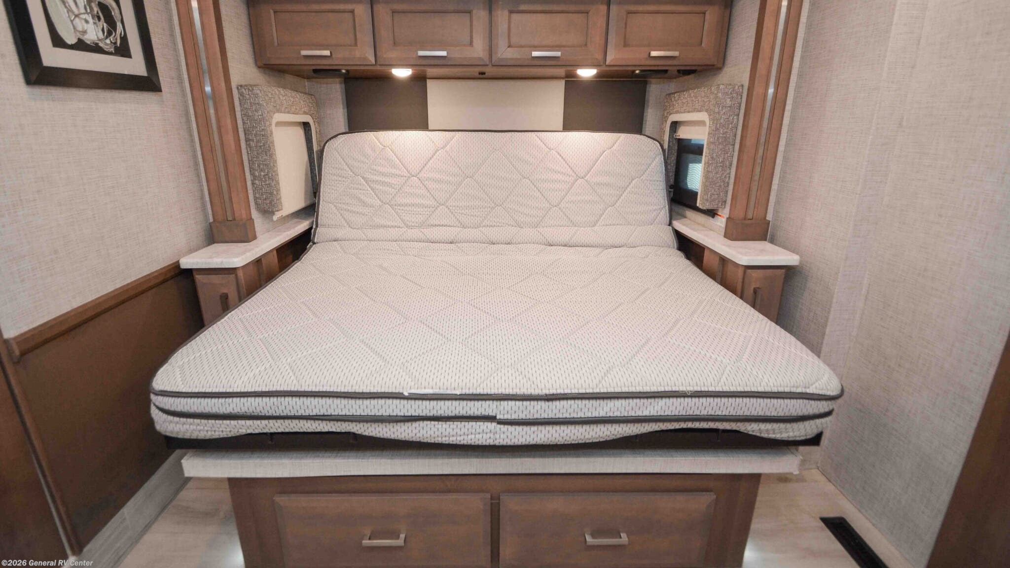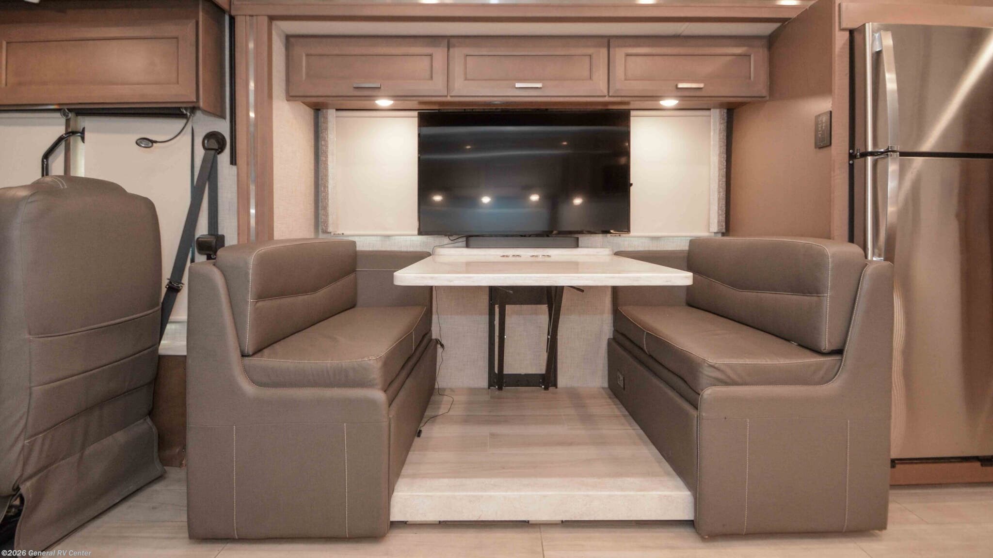 Step into the luxurious world of the 2023 Thor Motor Coach Aria 4000, where elegance meets functionality. This impressive diesel pusher is built on the reliable Freightliner XC-Series chassis and powered by a robust Cummins I6 engine, delivering 360 horsepower and 800 lb-ft of torque. With its sleek exterior and 41-foot length, the Aria 4000 is designed to turn heads while providing a smooth and powerful ride. The spacious interior features a front living area with a 70" sofa bed and an 88" dream dinette, perfect for entertaining or relaxing with family and friends. The tilt-a-view king bed in the center bedroom offers a restful retreat, while the bunk beds and convertible sleeping areas accommodate up to 10 guests comfortably. The Aria 4000 is equipped with modern conveniences to enhance your travel experience. The center kitchen boasts a full-size residential refrigerator, convection cooking, and a two-burner cooktop, making meal preparation a breeze. Enjoy the convenience of a stackable washer and dryer, ensuring you're always ready for the next adventure. The thoughtfully designed floorplan includes a rear and center bath with a tub shower and a separate shower area, offering flexibility and comfort. Outside, the 20-foot powered retractable awning provides the perfect shaded spot for outdoor enjoyment. With a 100-gallon fuel capacity and a towing capacity of 10,000 pounds, the Aria 4000 is ready to take you wherever the road leads. For more details or to experience this remarkable RV in person, visit your nearest General RV dealership.