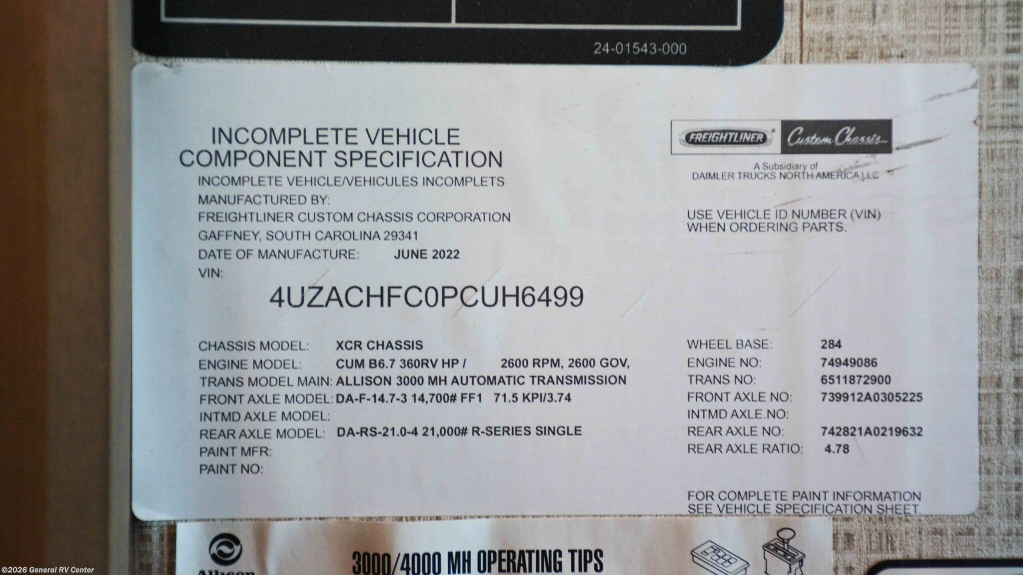 - VIN4UZACHFC0PCUH6499