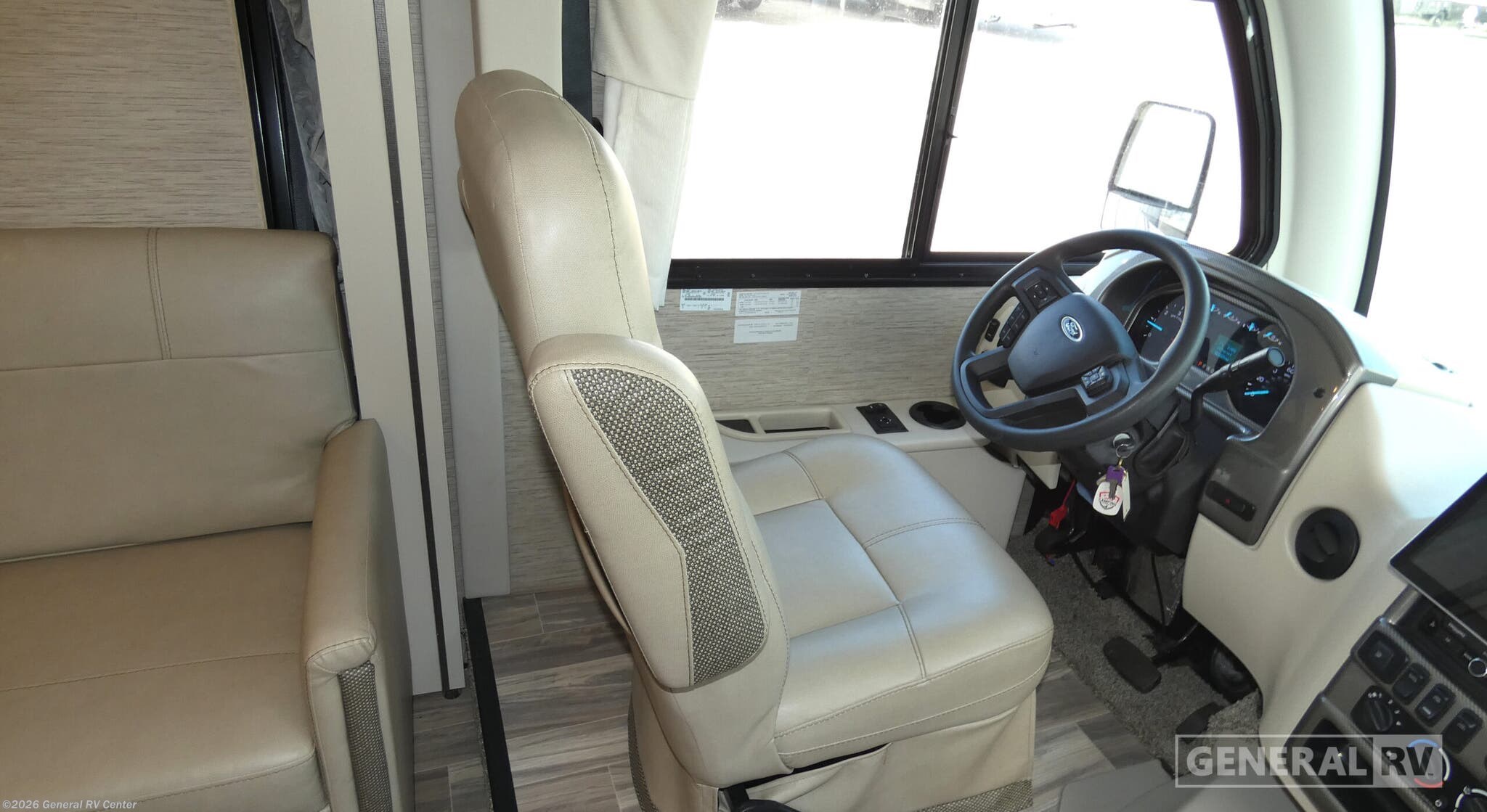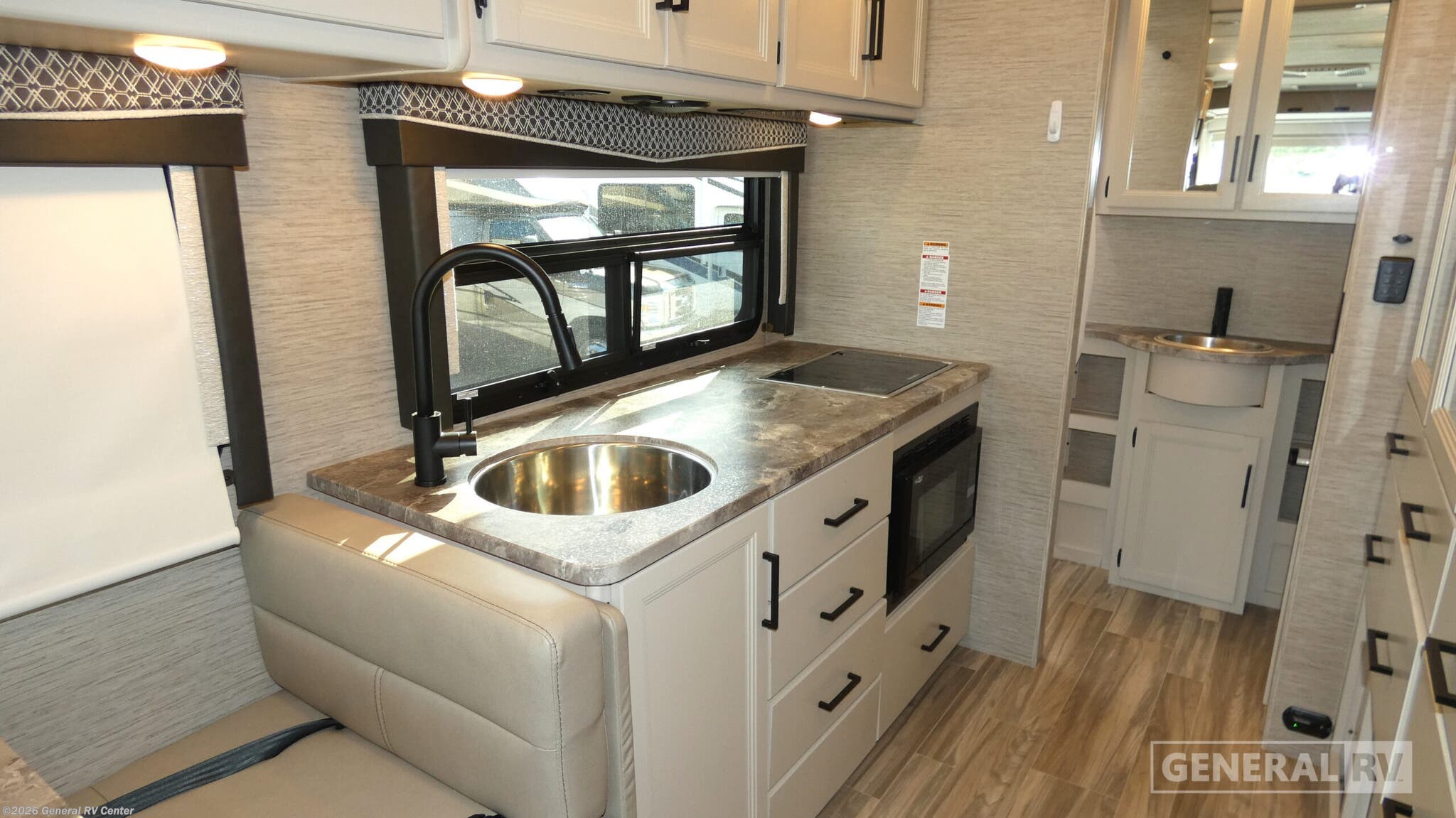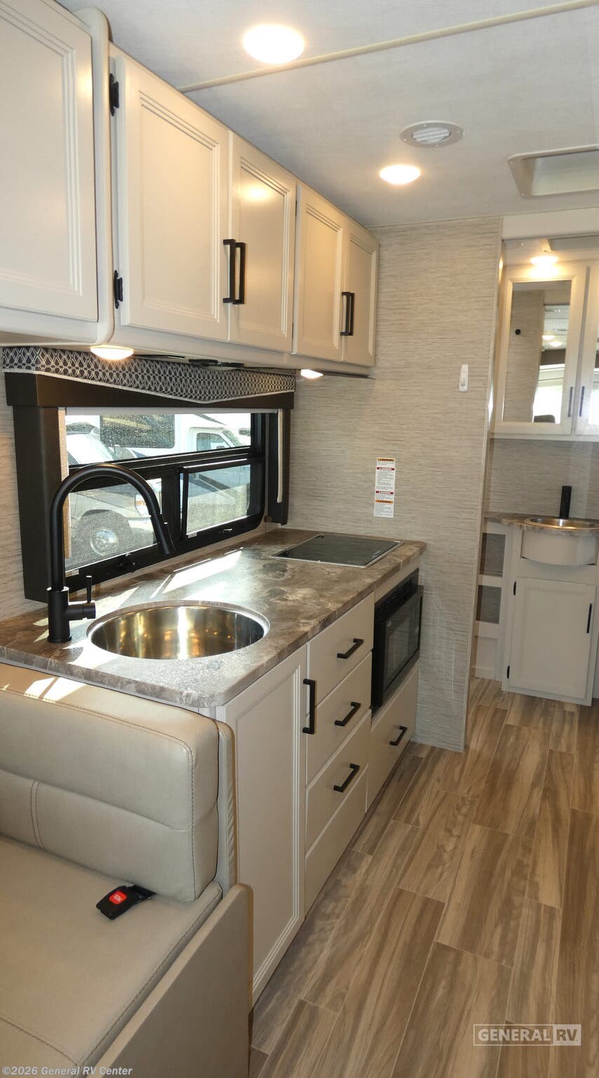 Step into the 2023 Thor Motor Coach Axis 24.3, where compact luxury meets functionality on the open road. This stylish RV, built on a robust Ford E350 chassis and powered by a Triton V8 engine, offers an impressive 325 horsepower and 450 lb-ft of torque, ensuring a smooth and powerful drive. At just over 25 feet in length, it’s perfectly designed for both maneuverability and comfort, making it an ideal choice for adventurous couples or small families. Inside, the Axis 24.3 boasts a thoughtfully designed floorplan that maximizes space and comfort. The front living area features a cozy 67" sofa that easily converts into a queen-size Murphy bed, providing a restful night's sleep. The drop-down overhead bunk offers additional sleeping space, making it perfect for up to four guests. The center kitchen is equipped with a mid-size refrigerator, a two-burner cooktop, and convection cooking, allowing you to whip up delicious meals on the go. The rear bath, complete with a shower and curtain, ensures you have all the comforts of home. With a 17 ft. powered retractable awning, you can enjoy the great outdoors in style. Visit your nearest General RV dealership to explore this remarkable RV in person!