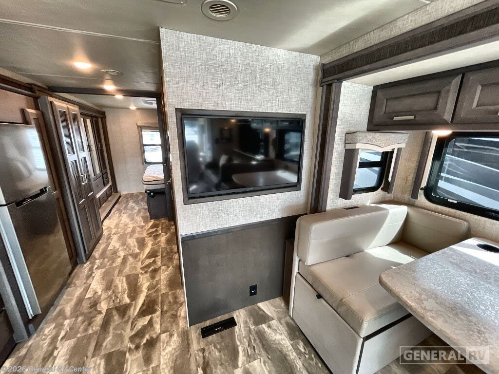 Step into the luxurious world of the 2023 Thor Motor Coach Challenger 35MQ, where comfort meets innovation on the open road. This motorhome is designed to accommodate up to eight guests, offering a king-sized Tilt-A-View bed, a full-size bed, and two convertible sleeping areas, ensuring everyone has a restful night's sleep. The spacious interior features a front living area with a 68" sofa bed and home theater seating, perfect for movie nights on the retractable 49" TV. The center kitchen is equipped with a full-size electric refrigerator and a two-burner cooktop, making meal preparation a breeze. The Challenger 35MQ stands out with its thoughtful layout, including a center bath and a rear bedroom, providing privacy and convenience. The powered retractable 20 ft. awning invites you to enjoy outdoor gatherings, while the stackable washer and dryer add a touch of home. Built on a robust Ford F53 chassis with a Triton V8 engine, this motorhome delivers 350 horsepower and 468 torque, ensuring a smooth ride. With a towing capacity of 8,000 lbs, you can bring along additional gear or a small vehicle. Visit your nearest General RV dealership to explore this remarkable RV and start your next adventure in style.