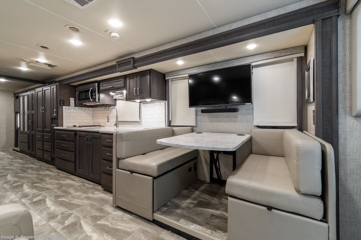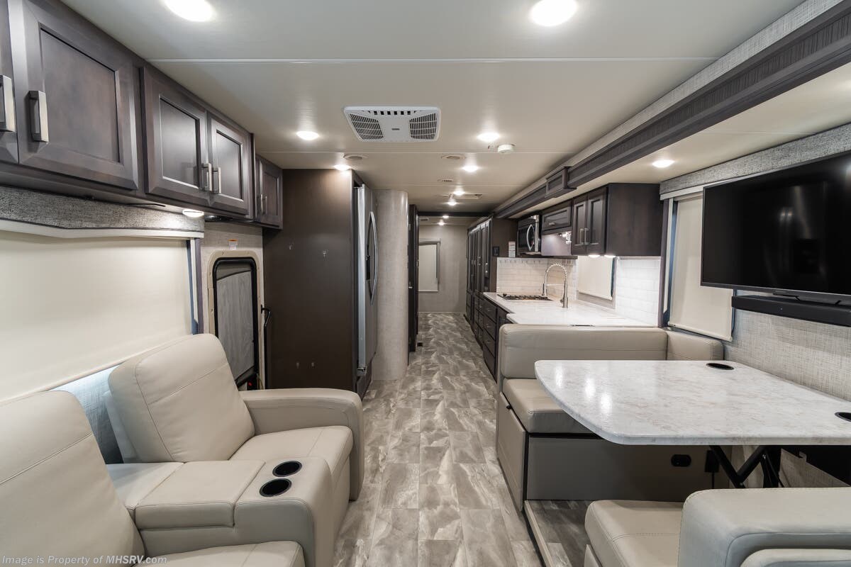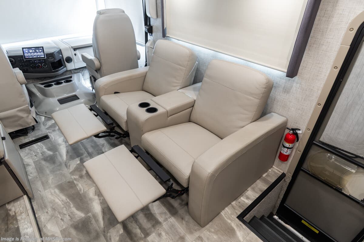 Used Thor Motor Coach RV for sale – 2023 Thor Motor Coach Challenger 36FA is approximately 36’ 2” in length with 16,124 Miles, 2 slides and features LCI auto leveling jacks, aluminum wheels, full body paint, 3 camera monitoring system, dual A/C, Onan 5.5KW gas generator, Ford 7.3L V8 gas engine, Ford chassis, tile steering wheel, smart wheel, power patio awning, pass through storage, docking lights, black tank flush, water filtration system, 50 amp power, exterior shower, exterior entertainment, clear paint mask, fiberglass roof, solar, inverter, leather seating, sleeper booth, kitchen backsplash, 7 foot ceiling, hardwood cabinet, solid surface counter, sink cover, convection microwave, 3 burner gas range, residential refrigerator with ice maker, stackable washer/dryer, king bed, theater seats and much more. For additional details on this unit and our entire inventory including brochures, window sticker, videos, photos, reviews & testimonials as well as additional information about Motor Home Specialist and our manufacturers please visit us at or call 800-335-6054. At Motor Home Specialist, we DO NOT charge any prep or orientation fees like you will find at other dealerships. Read Thousands upon Thousands of 5-Star Reviews at and See What They Had to Say About Their Experience at Motor Home Specialist.