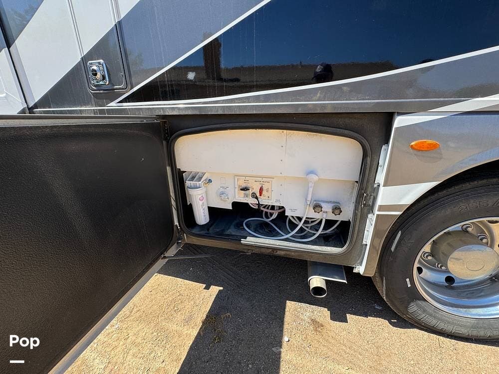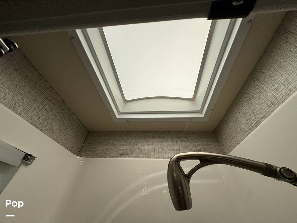 The tankless water heater ensures hot showers on demand, while the heated and enclosed underbelly allows for all-season travel.