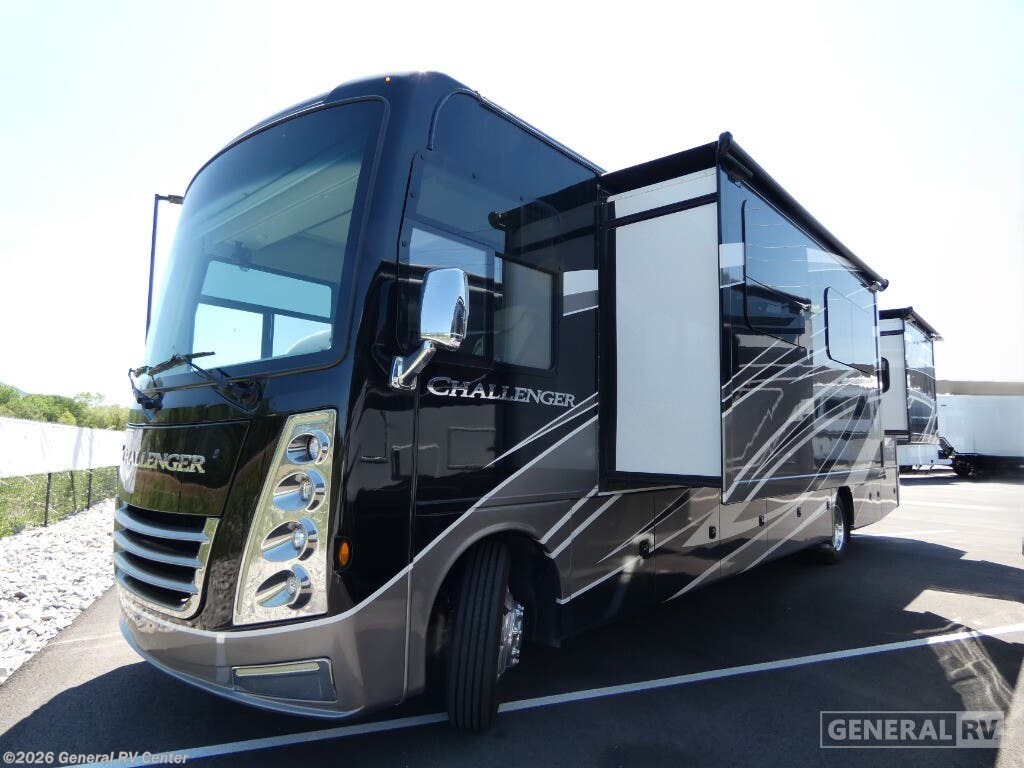 Discover the 2023 Thor Motor Coach Challenger 37FH, where luxury and functionality harmoniously blend to create an unforgettable travel experience. This spacious RV, stretching over 39 feet, is built on the robust Ford F53 chassis and powered by a mighty Triton V8 engine, offering 350 horsepower and 468 lb-ft of torque. As you explore the interior, you'll find a thoughtfully designed layout featuring a front living area perfect for relaxation, complete with a cozy fireplace and a retractable 49" TV for entertainment. The kitchen, located centrally, boasts modern amenities, including a full-size refrigerator and a convection cooktop, making meal preparation a breeze. The Challenger 37FH comfortably accommodates up to eight guests, with a king-size Tilt-A-View bed in the master suite, a full-size bed, and convertible sleeping options in the dinette and sofa. The rear and center bath areas provide convenience and privacy, with ample storage space to keep everything organized. Outside, the 20-foot powered retractable awning creates an inviting outdoor space, perfect for enjoying the fresh air and scenic views. With a towing capacity of 8,000 pounds, you can bring along extra gear or a vehicle for even more adventure. For more details and to see this stunning RV in person, visit your nearest General RV dealership.