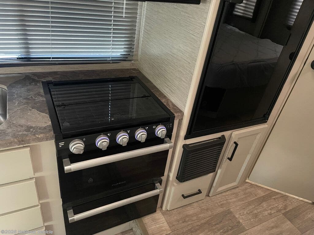 The well-appointed galley kitchen includes everything you need for on-the-go meal prep - including a stove, microwave, sink, and plenty of counter space and storage. After a fun day exploring, retreat to the cozy sleeping areas including the cab-over bunk and private rear bedroom, offering flexibility and comfort for family or guests.