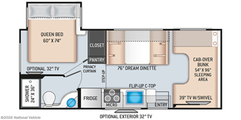 A full bathroom adds everyday convenience with modern fixtures and a practical layout. Smart storage solutions throughout the coach keep gear and essentials organized, so you can focus on enjoying the journey.