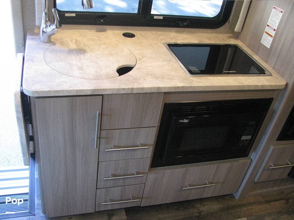 The RV has 100-watt solar and is fully self-contained and comes with Rapid Camp+ multiplex lighting and System control.