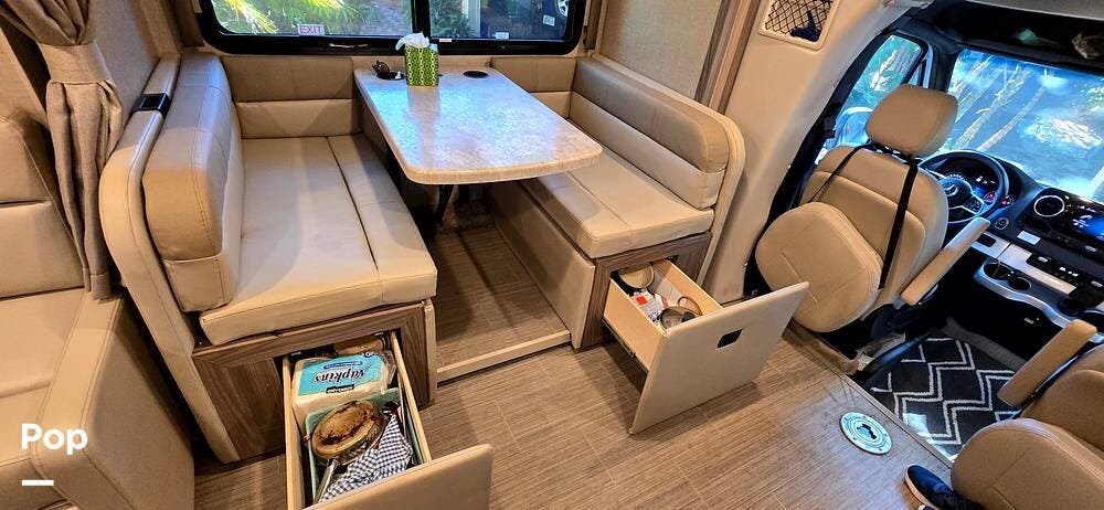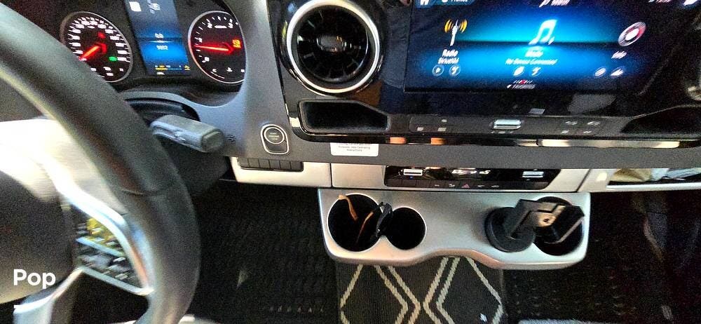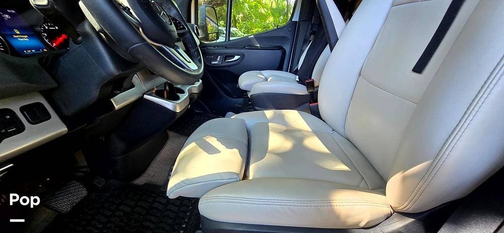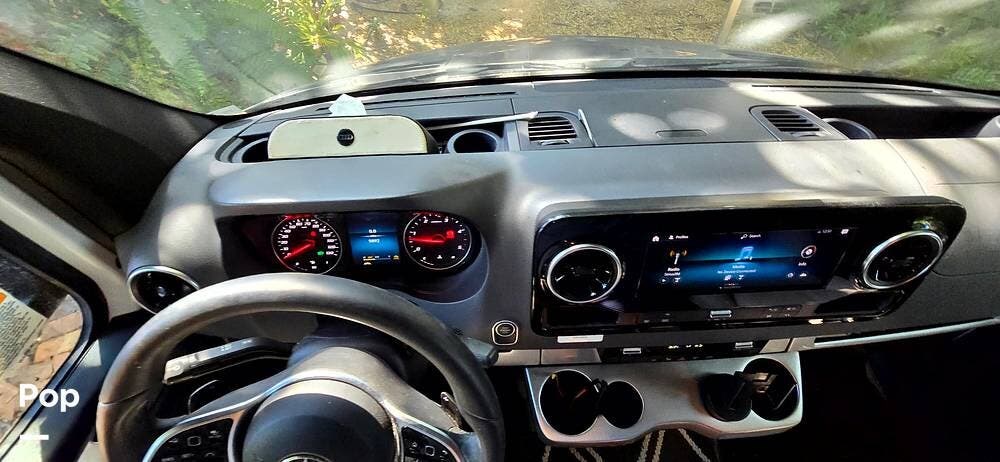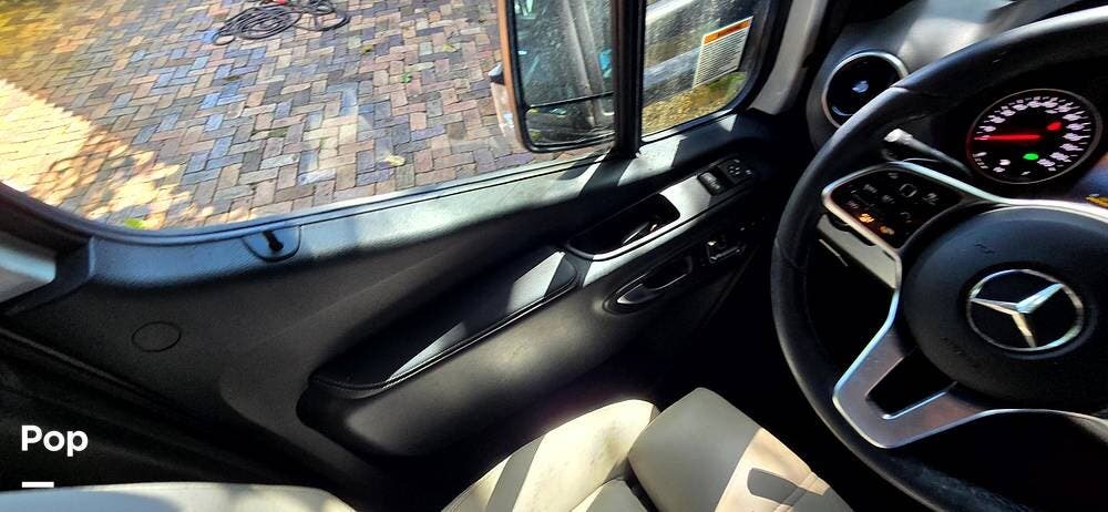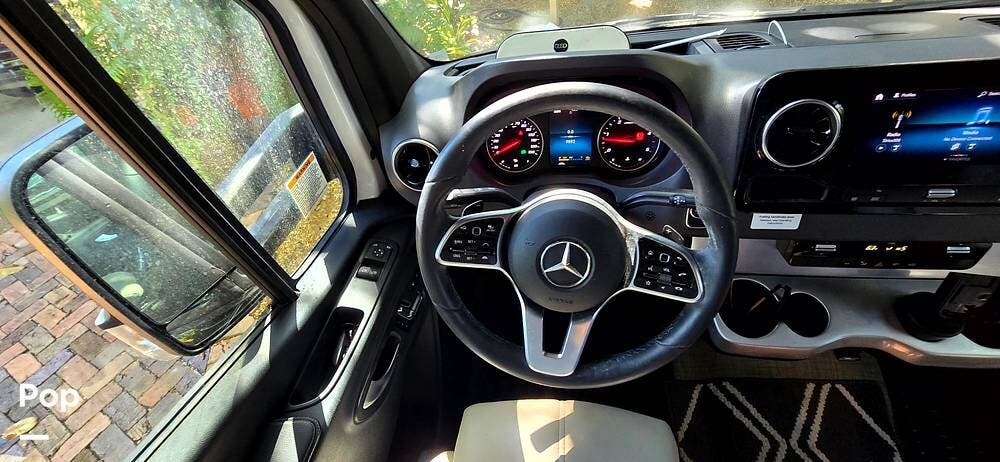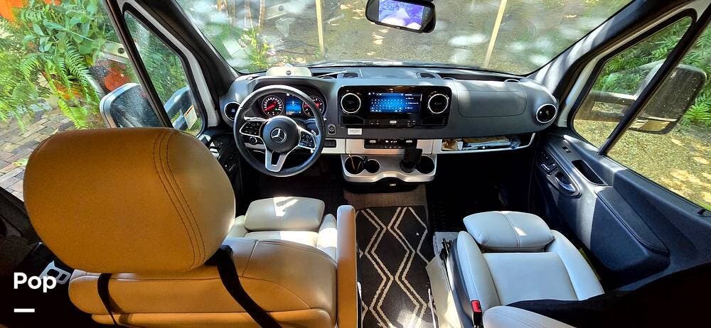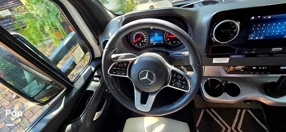 The cockpit showcases Mercedes-Benz luxury with heated, electric swivel captain's chairs that allow the driver and passenger to turn and join the living space when parked. A multifunction steering wheel, premium multimedia dash radio with navigation, Bluetooth, and rear-view camera integration make every drive safe and effortless. Other automotive amenities include cruise control, keyless start, and heated power mirrors with integrated side-view cameras.