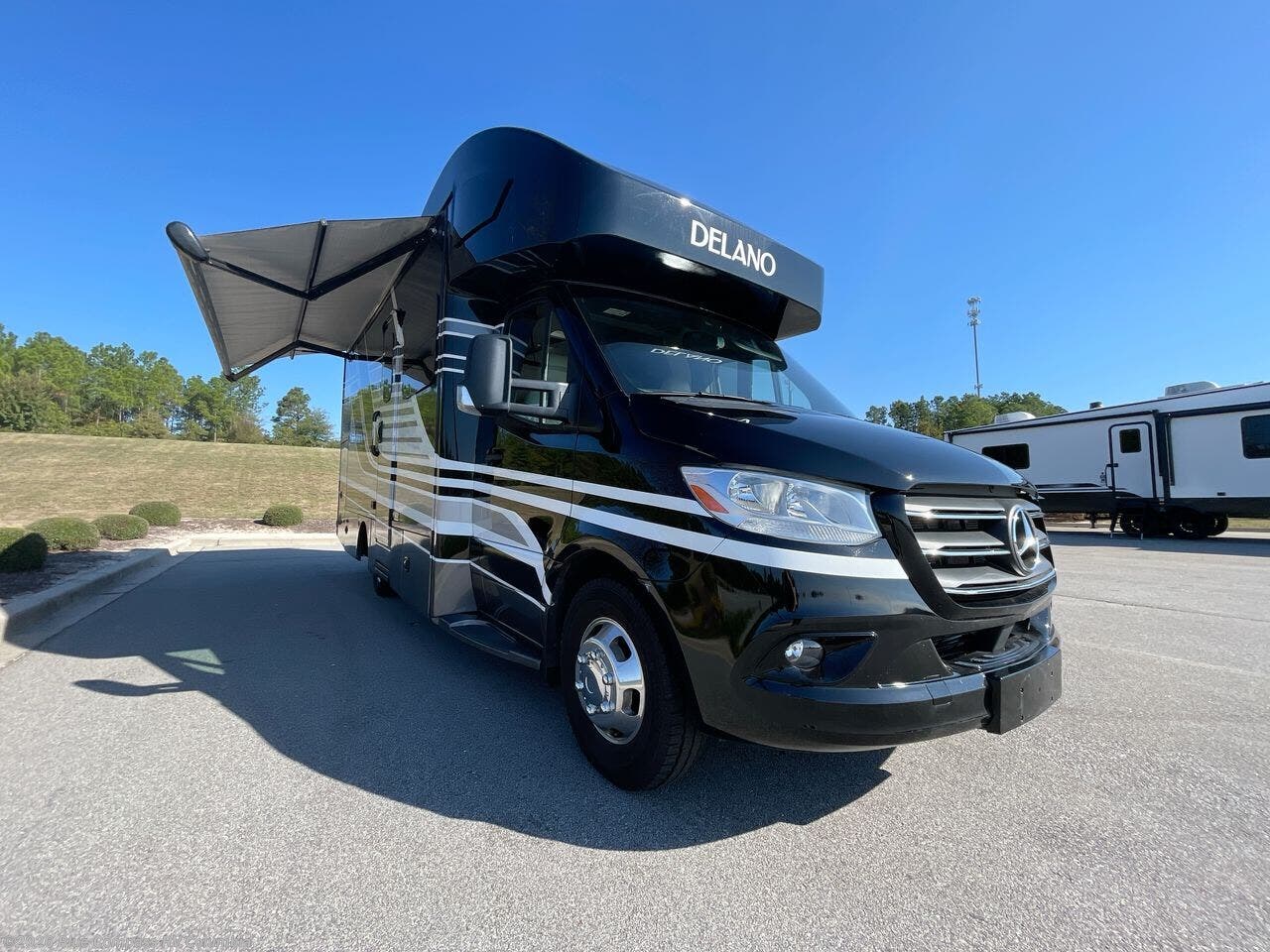 Luxury comes standard in the Delano Sprinter Class C diesel motorhomes by Thor Motor Coach. You will find it so easy to maneuver the road with the Mercedes-Benz Safety package that includes features such as active braking assist and distance regulator distronic plus that will help keep a safe distance from vehicles in front of you. The frameless windows and the full-body paint package with gel coated sidewalls is sure to be eye-catching, plus there is invisible front paint protection for added defense against the elements. Each model includes the Rapid Camp+ multiplex wiring control system that will make set-up easier than ever, a Winegard ConnecT 2.0 WiFi/4G/TV antenna to keep you connected to the outside world, and a whole coach water filtration system for fresh H2O day or night. The Delano Sprinter also includes many interior comforts, like the easy-to-clean residential vinyl flooring, the high-gloss Euro-style cabinetry, and the Leatherette furniture!