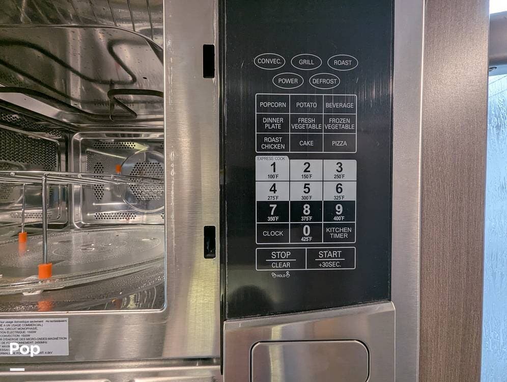 The galley is compact but has everything you need to prepare meals; the refrigerator runs on propane or electric, there's a convection microwave, and a two-burner propane stove. The generator is also run on propane and started right up, running nicely.
