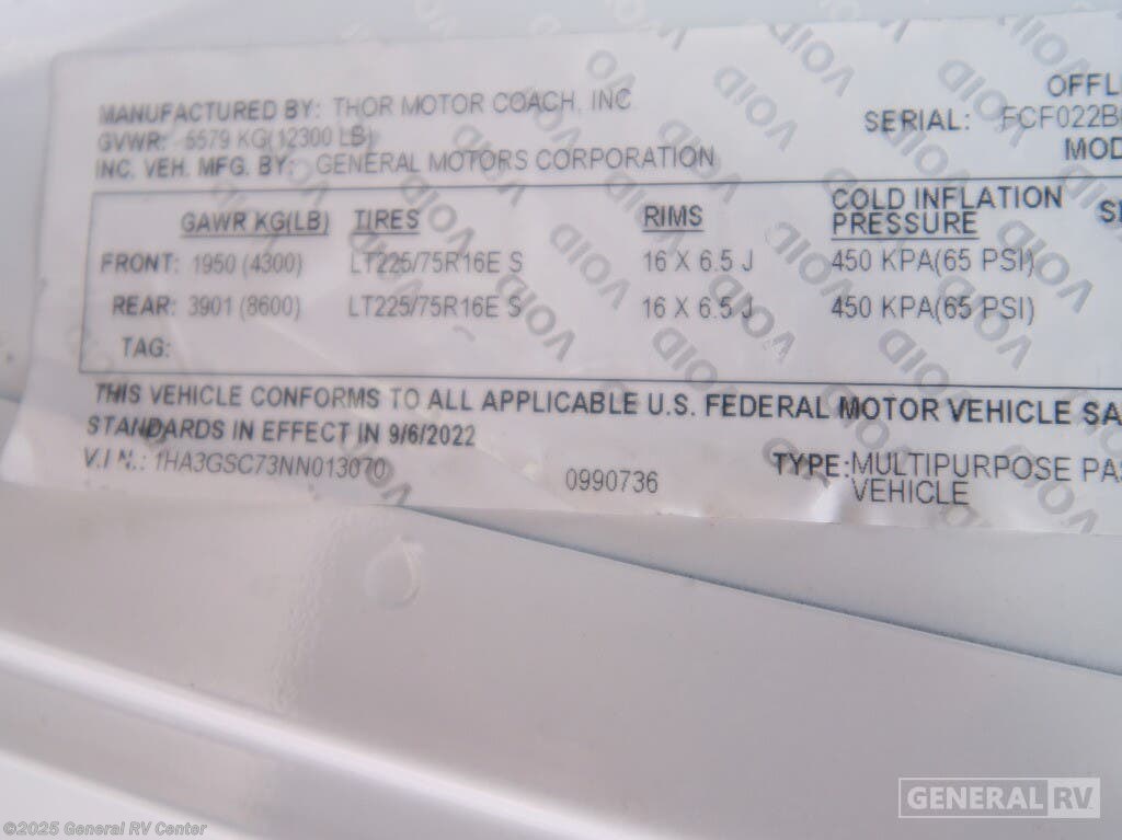 Step into the world of adventure with the 2023 Thor Motor Coach Four Winds 22B, where comfort meets functionality in a compact yet spacious design. This versatile RV is built on a robust Ford E350 chassis, powered by a Vortec V8 engine delivering 325 horsepower and 450 torque, ensuring you have the power needed for any journey. With a length of just over 24 feet, this motorhome is easy to maneuver, making it perfect for both seasoned travelers and those new to the RV lifestyle. Inside, the Four Winds 22B offers a thoughtfully designed layout that maximizes space and comfort. The rear queen bed provides a cozy retreat, while the cab-over bunk and convertible dinette ensure ample sleeping space for up to six people. The center kitchen is equipped with a three-burner cooktop and mid-size refrigerator, ideal for preparing delicious meals on the road. The rear bath with a shower curtain adds convenience, while the 15 ft. powered retractable awning extends your living space outdoors, perfect for enjoying the great outdoors in style. Experience the perfect blend of adventure and relaxation with the Four Winds 22B. Visit your nearest General RV dealership to explore this remarkable RV in person.