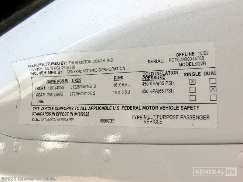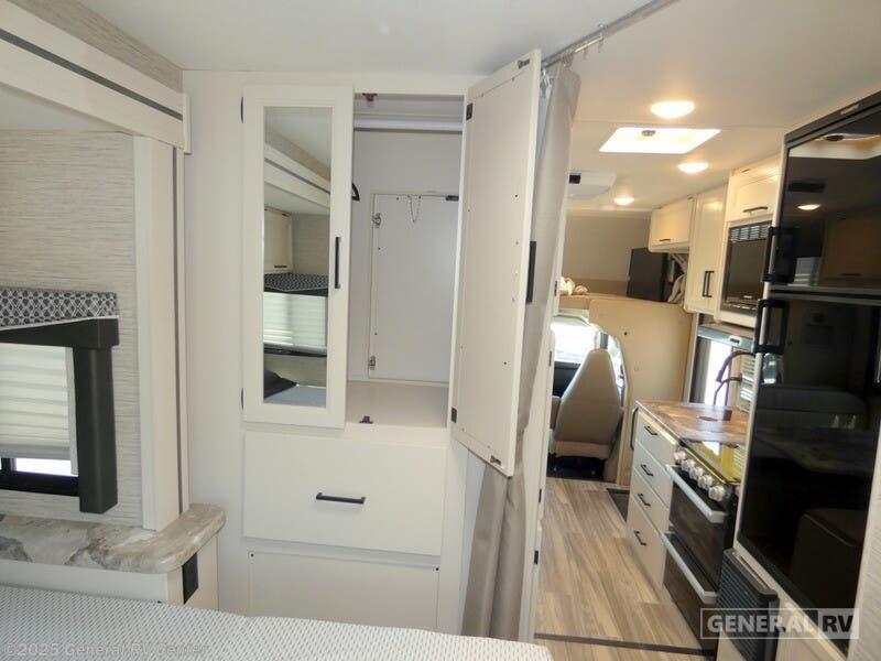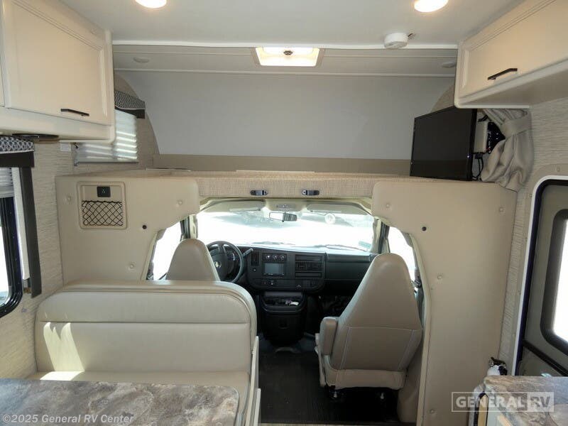 Experience the perfect blend of comfort and adventure with the 2023 Thor Motor Coach Chateau 22B. This compact yet spacious RV is designed for families and travelers who crave both convenience and style. With its sleek Ford E350 chassis and powerful Vortec V8 engine, you'll enjoy a smooth and reliable journey wherever the road takes you. The Chateau 22B offers ample sleeping space for up to six people, featuring a cozy queen bed, a convertible dinette, and a roomy cab-over bunk, ensuring everyone has a comfortable place to rest. Inside, the thoughtfully designed floorplan maximizes every inch of space. The center kitchen is equipped with a three-burner cooktop and a mid-size refrigerator running on electric or propane, making meal preparation a breeze. The rear of the RV houses a private bathroom with a shower, providing all the comforts of home. The 15-foot powered retractable awning extends your living space outdoors, perfect for enjoying scenic views or dining al fresco. Whether you're embarking on a cross-country road trip or a weekend getaway, the Chateau 22B promises a delightful experience. For more details or to see this model in person, visit your nearest General RV dealership.