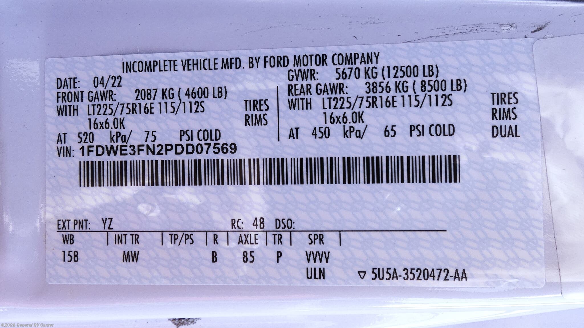 - VIN1FDWE3FN2PDD07569
