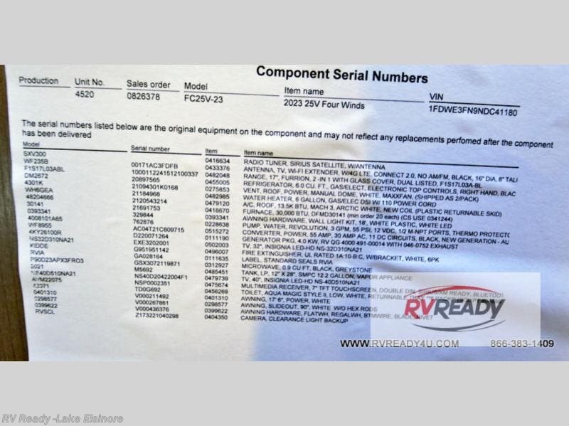 Request More Info on this 2023 Thor Motor Coach Four Winds 25V Offered for sale by RV Ready