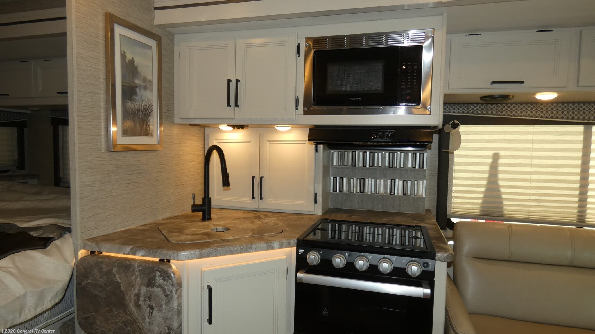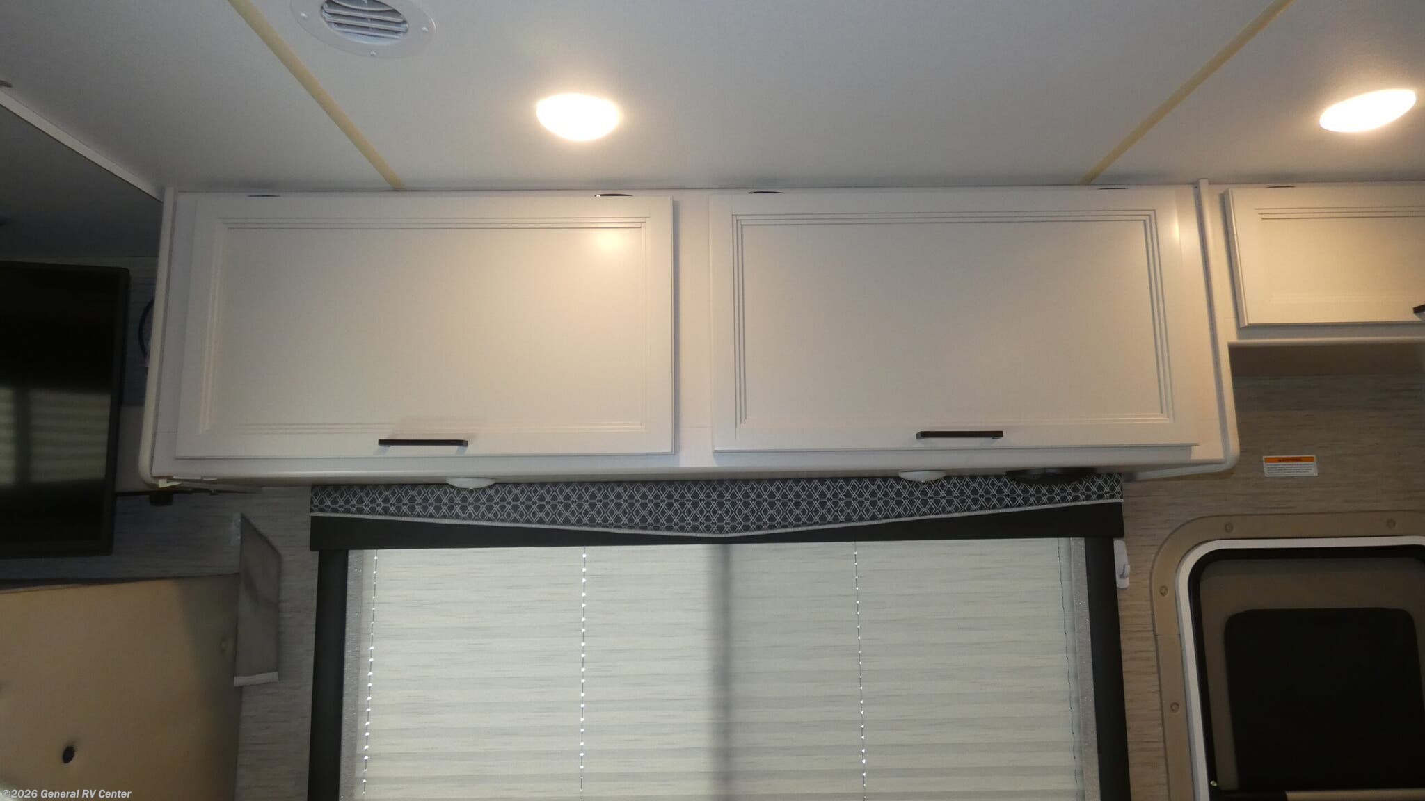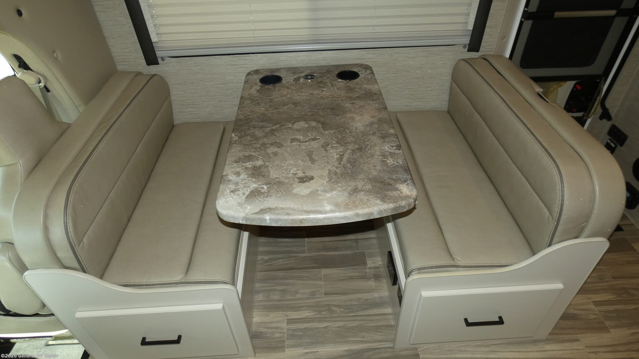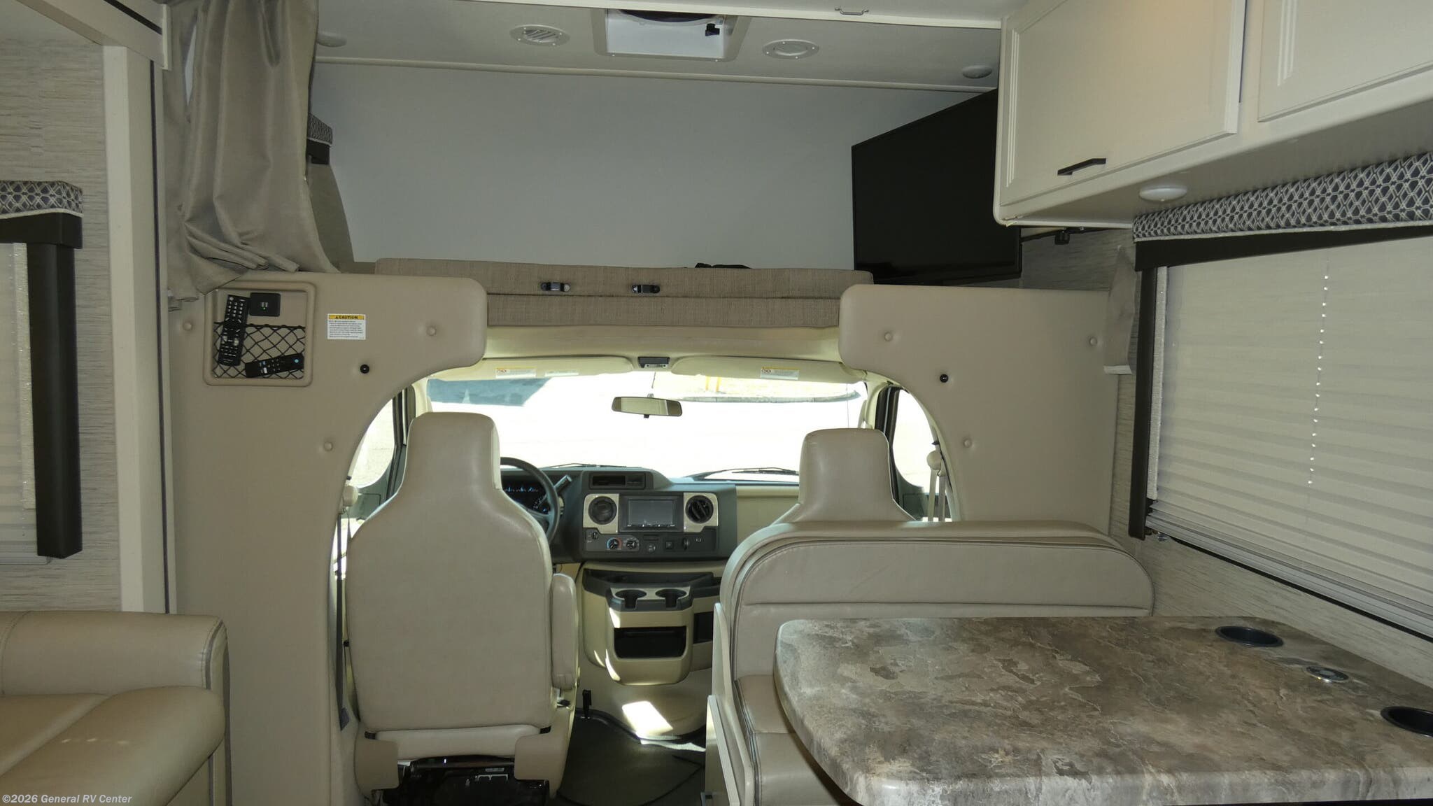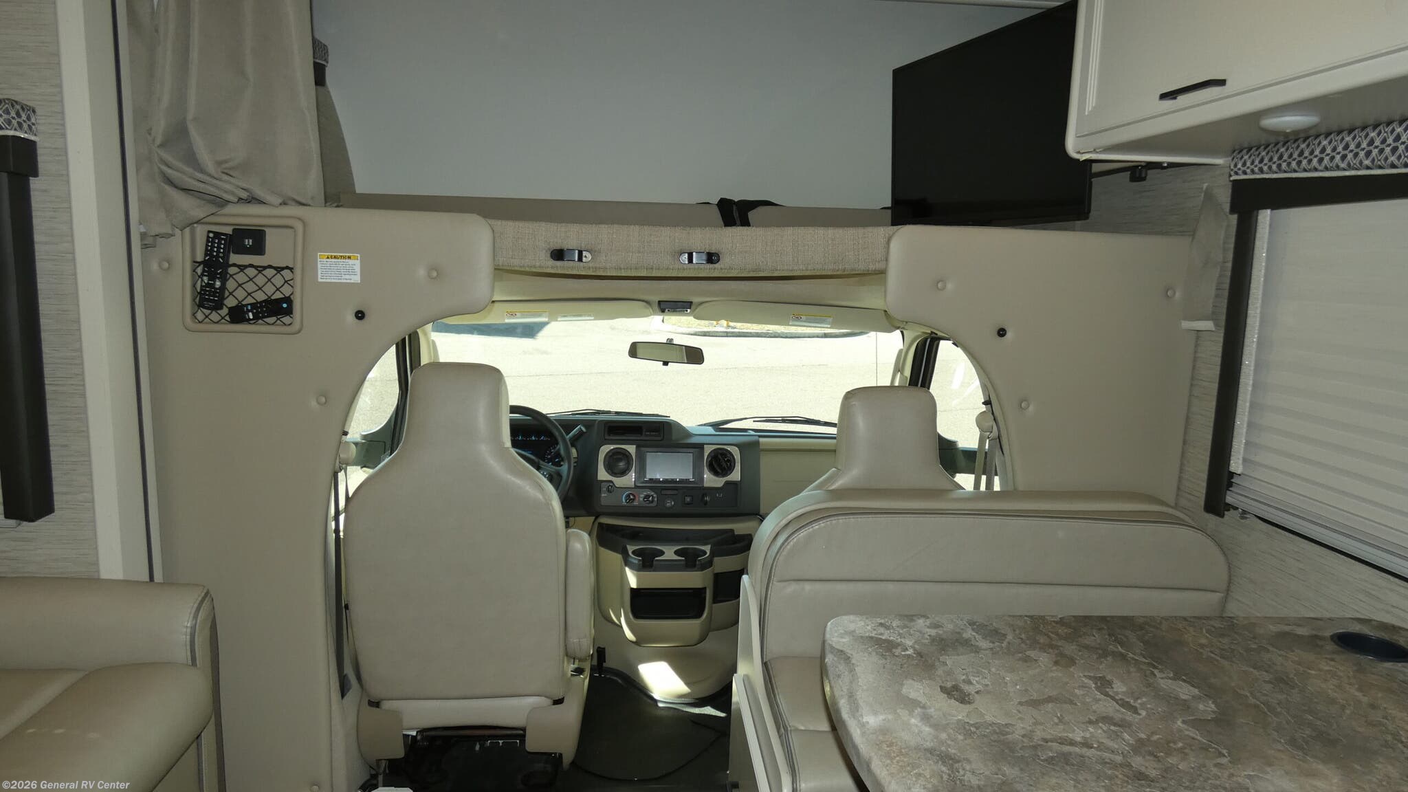 Thor Motor Coach Four Winds Class C gas motorhome 27R highlights: King Bed Large Slide Out Cab Over Bunk Jack-Knife Sofa Electric Stabilizing System Sleep like a king each time you take this coach on vacation! You and your favorite person will always get a good night's rest even when you have family or friends staying over on the cab over bunk and furniture, plus you can close the privacy curtain if needed. You will have a rear closet for your clothing. Everyone can take turns getting cleaned up in the full bathroom with a 30" x 36" shower, and there is a closet just outside to stow linens or guest's belongings. The kitchen amenities include a gas cooktop with a glass cover and a microwave oven with option to add a convection microwave oven, and a large stainless steel sink on one side and a double door refrigerator and pantry on the other giving you everything you need to feed everyone. And the jack-knife sofa plus the dream dinette offer a cozy place to visit. With any Four Winds Class C gas motorhome, you can travel in a trustworthy Ford E-Series chassis with 350HP. Each is built with welded sidewall cage construction and a welded tubular aluminum roof, a one-piece fiberglass cap, and includes a slick fiberglass exterior with graphics package for style and years of enjoyment on the open road. Inside, you will enjoy the well-equipped kitchen, the spacious bathroom, the sleeping accommodations and the Winegard ConnecT 2.0 WiFi/4G/TV antenna that allows you to stay connected. With several floorplans to choose from, you will surely find one that fits your family's needs or your friend's approval. Choose today!