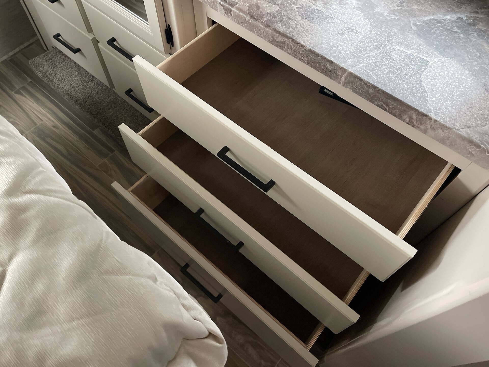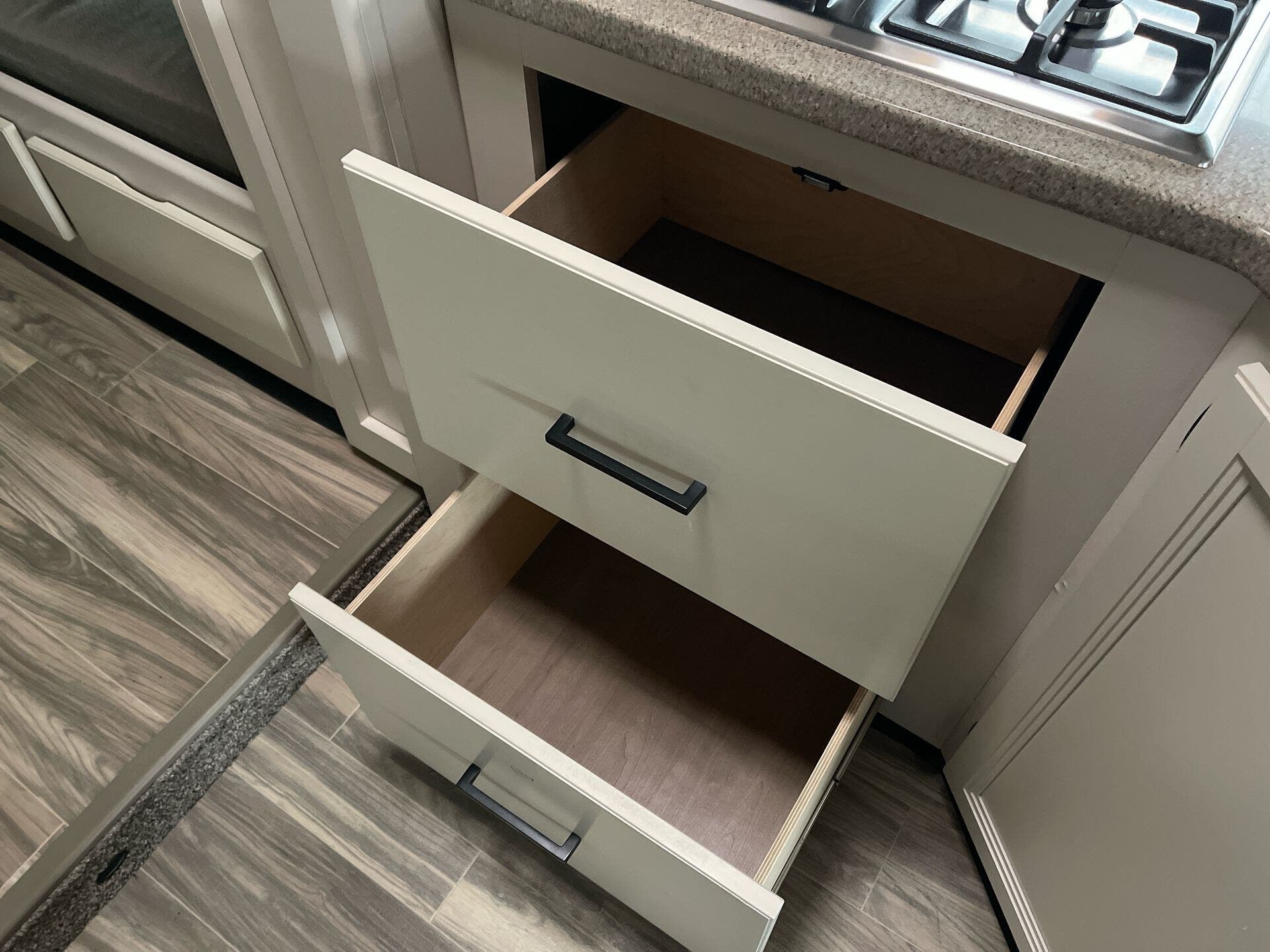 - Ladder, skylight, dinette, kitchen sink, and pantry for everyday practicality
