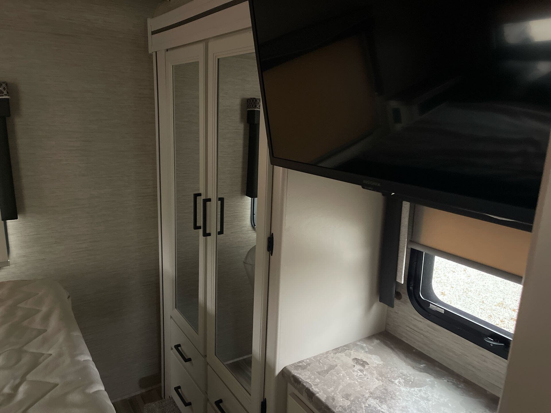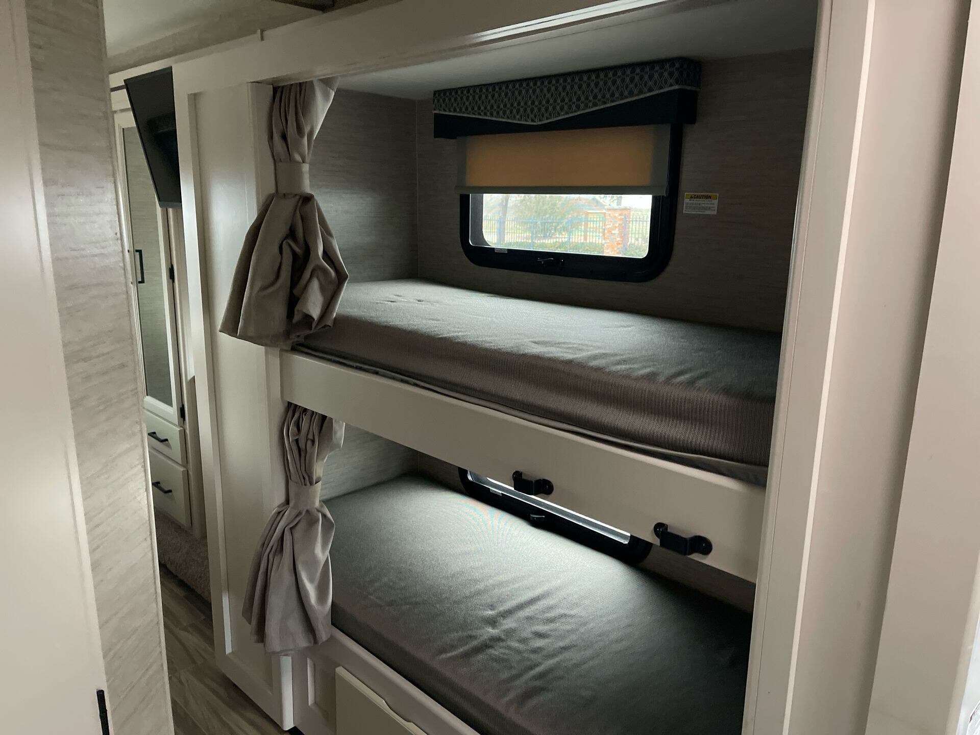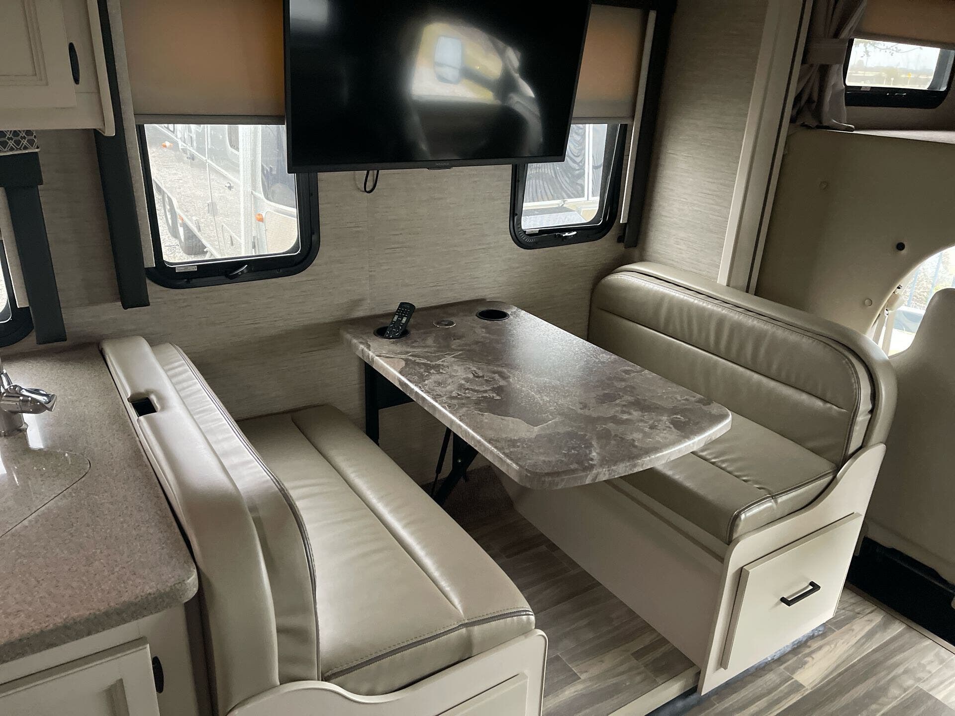 Discover the 2023 Thor Motor Coach Four Winds 31E, a versatile Class C motorhome built on the dependable Ford E-Series chassis. Powered by a strong 7.3L V8 engine, this recreational vehicle is designed for reliable highway performance and comfortable campground living. At a model length of 32 feet 8 inches, width of 8 feet 3 inches, and height of 11 feet 2 inches, it delivers a practical footprint that fits most campgrounds while offering roomy interior space thanks to a single slide-out. Accommodating up to seven travelers, it’s ideal for families or groups seeking an easy-to-drive, well-equipped home on wheels. With a total freshwater capacity of 40 gallons, plus 30 gallons of grey and 25 gallons of black water, you can enjoy modern amenities without frequent stops. Equipped with two 11,000 BTU roof air conditioners, a generator, and onboard batteries, this motorhome keeps you comfortable wherever the road takes you. Entertainment options include a Smart TV, a conventional TV, and an antenna, while practical convenience items like an awning and a black tank flush add to everyday usability. This used unit carries stock number P15621 and reflects Thor Motor Coach’s trusted blend of comfort, reliability, and travel usability for families exploring the open road.