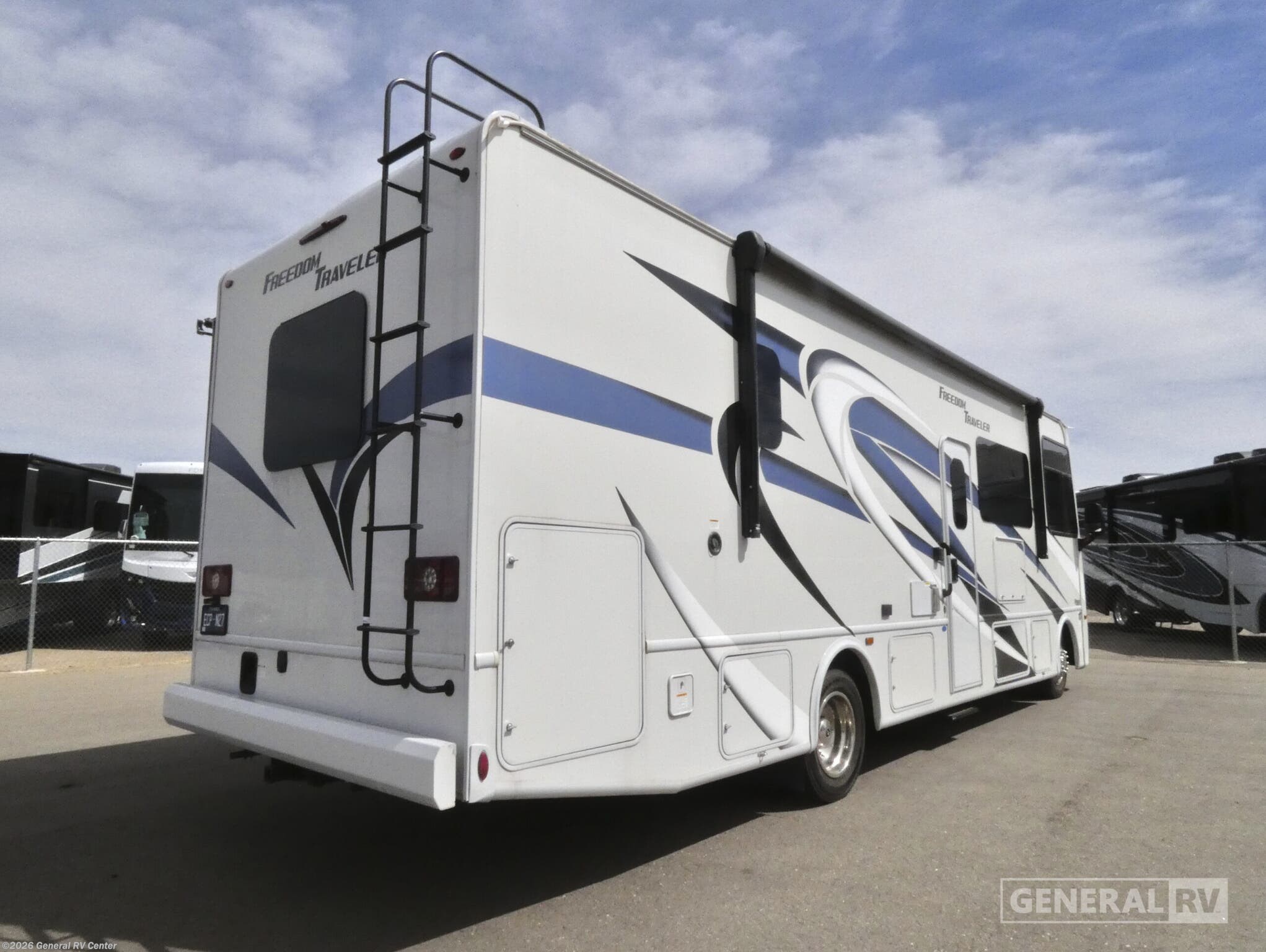 Experience the open road like never before with the 2023 Thor Motor Coach Freedom Traveler A30. This RV is designed for those who crave adventure without sacrificing comfort. With its spacious floorplan, it comfortably sleeps up to eight, featuring a cozy queen bed, a double bed, and versatile convertible sleeping areas. The front living area is perfect for relaxation, equipped with a 68" jack-knife sofa and a 70" dream dinette, making it ideal for family gatherings or entertaining guests. The drop-down overhead bunk offers additional sleeping space, ensuring everyone has their own cozy corner. The center kitchen is a culinary delight with a mid-size refrigerator and a three-burner cooktop, ready for all your cooking adventures. Enjoy your meals under the 18 ft. powered retractable awning, bringing the comforts of home to the great outdoors. The rear bedroom offers a peaceful retreat with ample closet space and a private 32" TV. Built on a robust Ford F53 chassis with a 350 horsepower engine, this RV promises a smooth and powerful ride. Whether you're exploring national parks or embarking on cross-country journeys, the Freedom Traveler A30 is your perfect travel companion. For more details, visit your nearest General RV dealership.