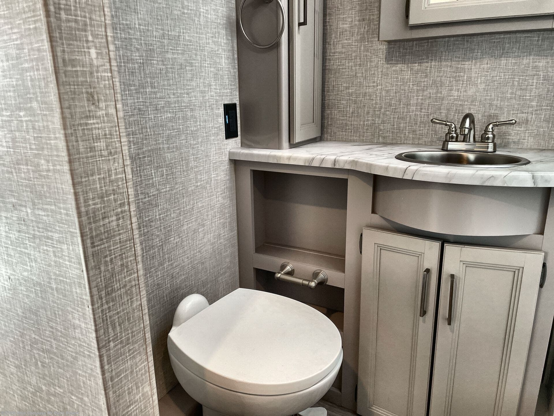 Family trips across the country are made complete in this spacious coach! The swivel captain's chairs can become a part of the living area once you park, and your guests can relax on the Dream Dinette or sofa bed. Lunch can be made on the three burner gas cooktop, or in the 30" over-the-range microwave oven, and clean up will be a breeze in the large double bowl stainless steel sink. This model also includes an outdoor kitchen with a refrigerator and a sink to store cold drinks and clean up before dinner. You will love having your own bedroom to retreat to each night, and here you'll find a king bed, a 32" TV, plus a closet to keep your clothes and shoes tidy!
