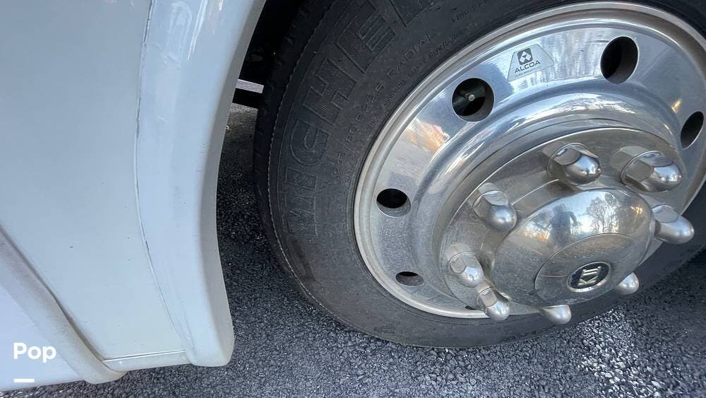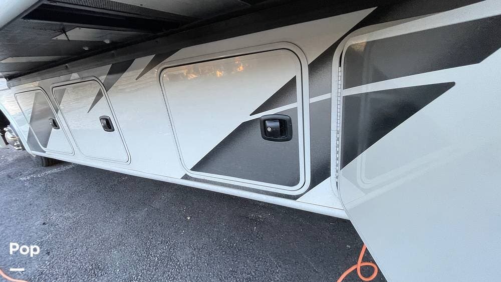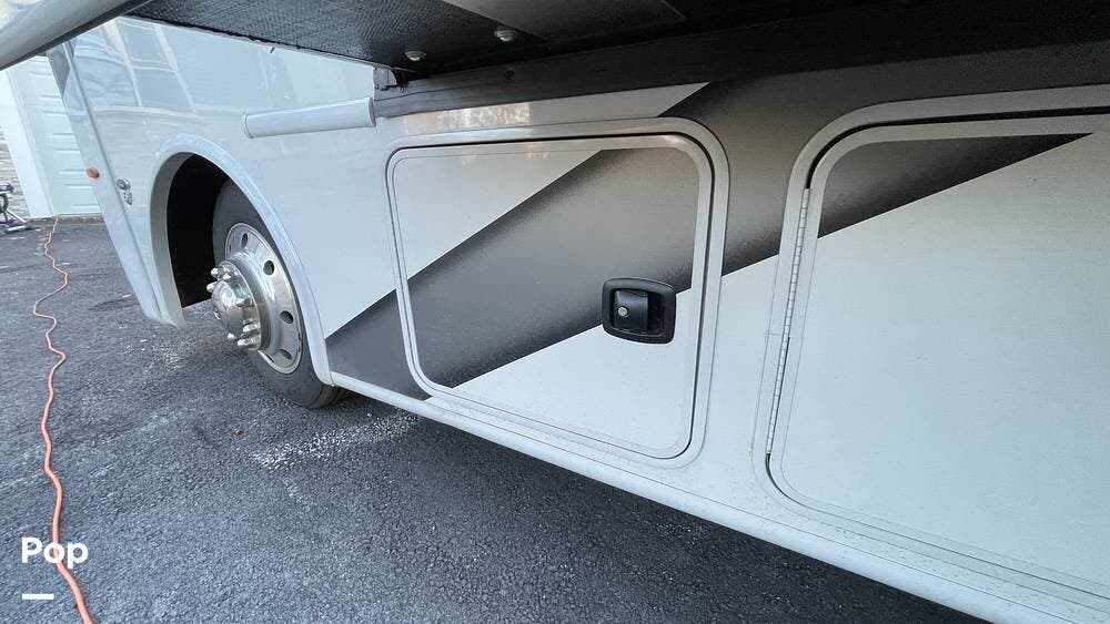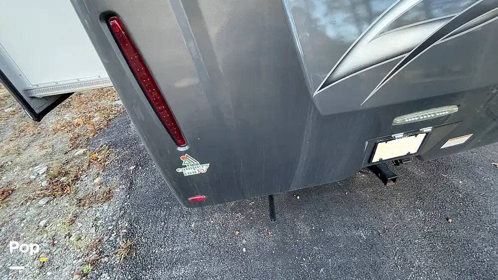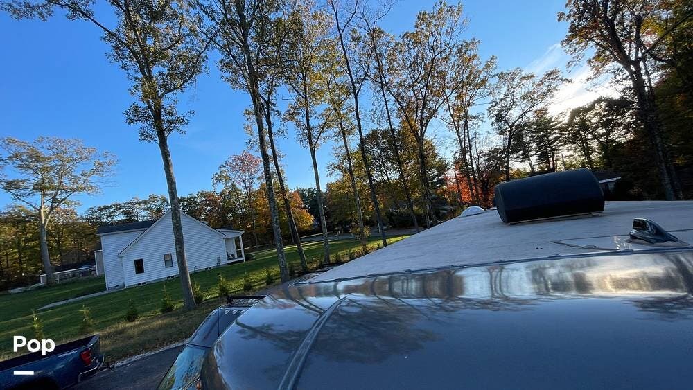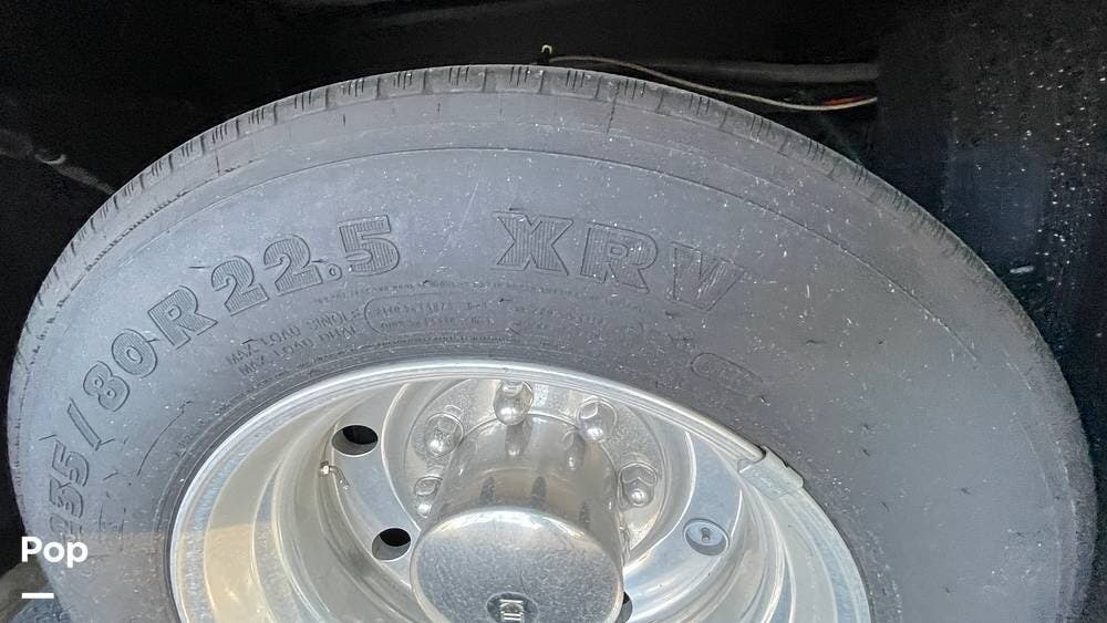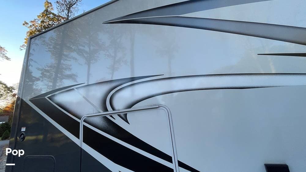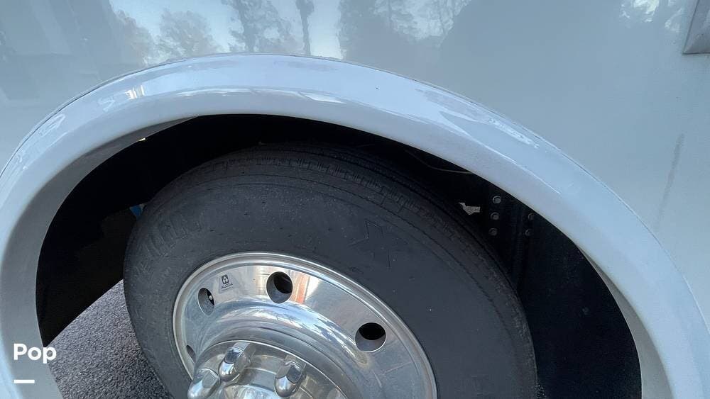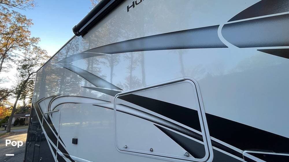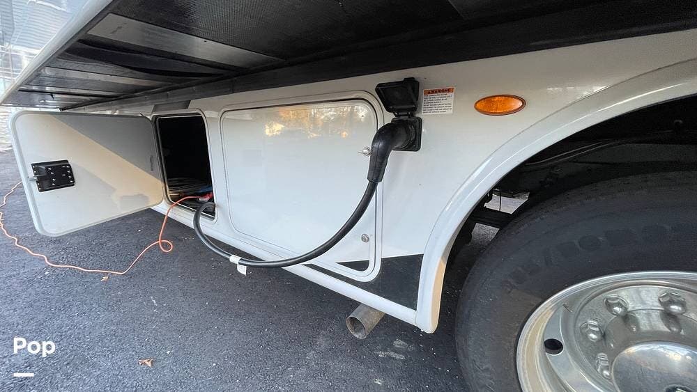 Under the hood, this Hurricane 34J is built on a sturdy Ford F-53 chassis and powered by a formidable 7.3L Triton V8 engine. This powerful combination provides the strength and reliability needed for long journeys and ensures that you can easily tow your favorite gear. The RV has an 8,000-lb. trailer hitch featuring a 7-pin round connector, making bringing everything from bikes to boats simple.