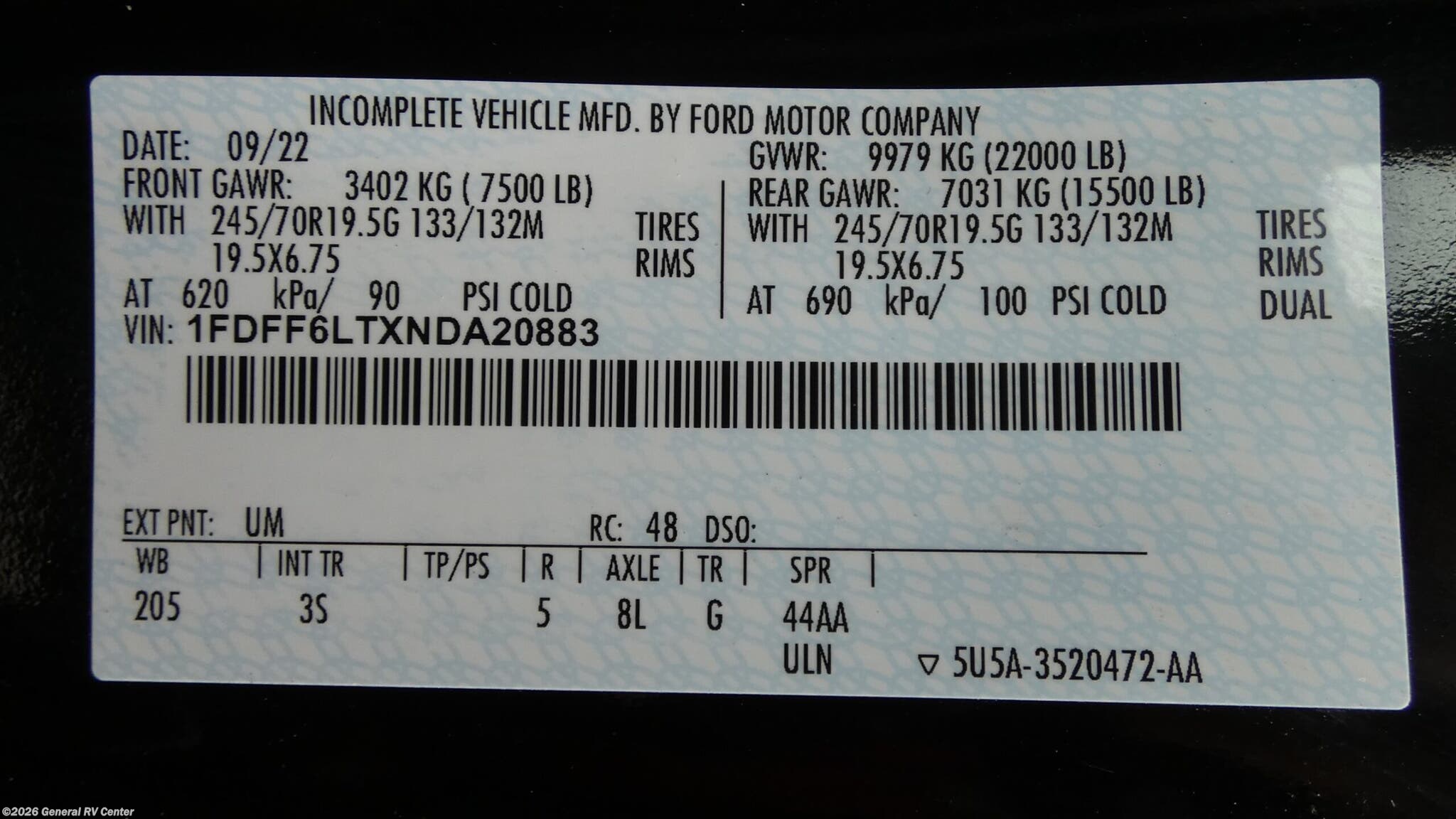 - VIN1FDFF6LTXNDA20883
