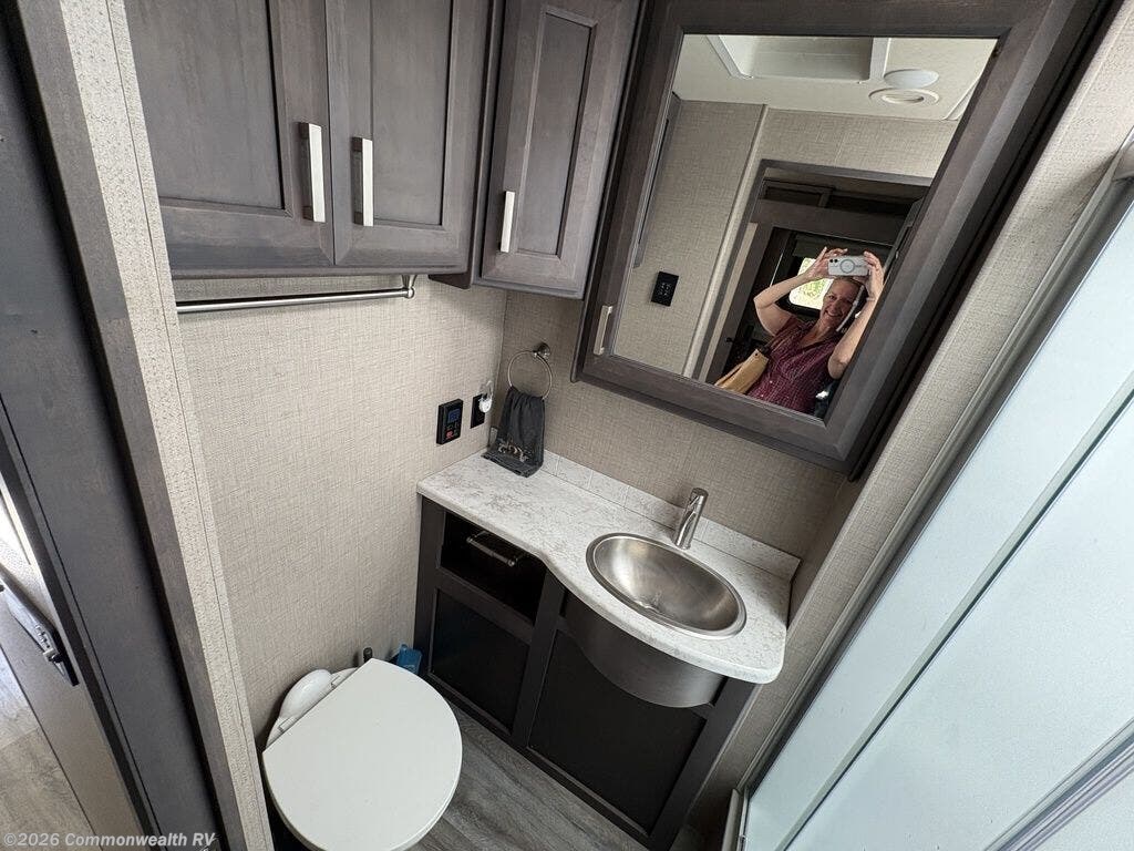 Stylish interiors, high-quality build, and entertainment galore – this 2023 Thor Miramar 34.6 makes luxurious travel a reality. Residential-style vinyl flooring, satin cabinetry with nickel hardware, and leatherette furniture give you a modern, upscale feel that’s miles ahead of any hotel stay.