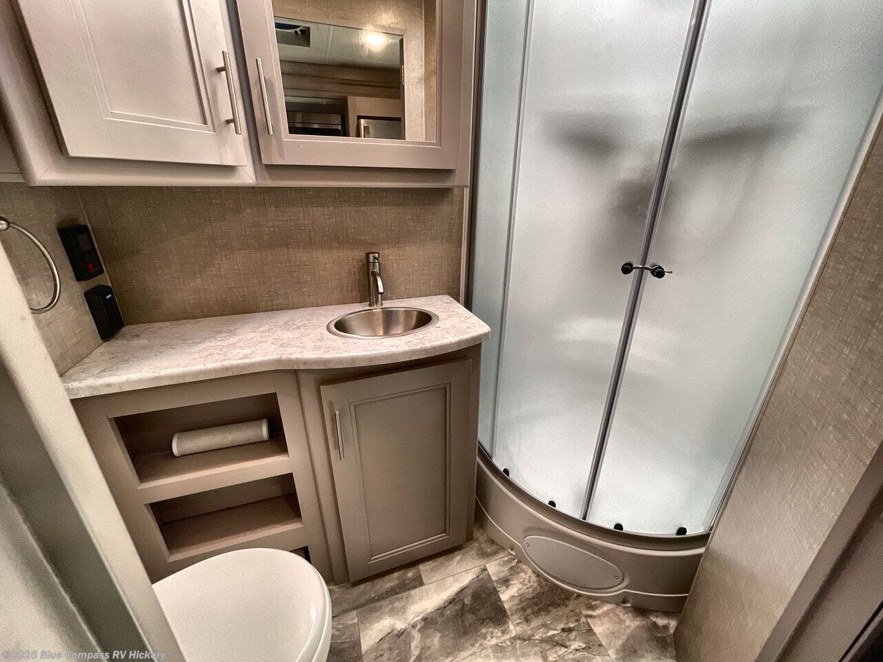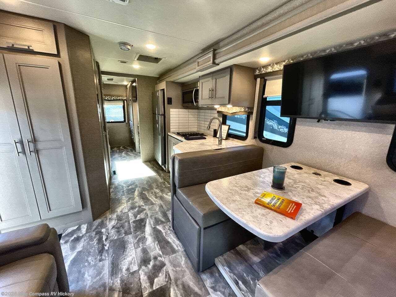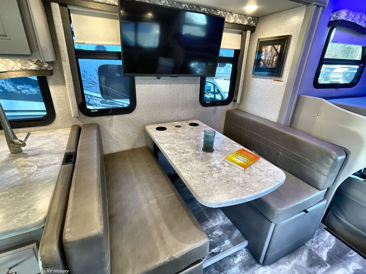 If you've been wanting to travel the country in style, now is the time with this motorhome that can sleep five people each night. The 39" living room TV is directly across from the theater seating for easy viewing, plus there is a 32" bedroom TV and an 32" exterior TV for all your entertainment needs. The Dream Dinette will be the perfect place to enjoy breakfast each morning as you plan out your day, or you may just want to sit at the picnic table under the 14' power awning. This model includes a mid-ship full bath with a shower skylight that will not only provide more natural light, but will give you more head room as you wash up. The rear private bedroom will feel just like home with its queen bed slide out, plus there is a wardrobe to keep your clothes tidy!